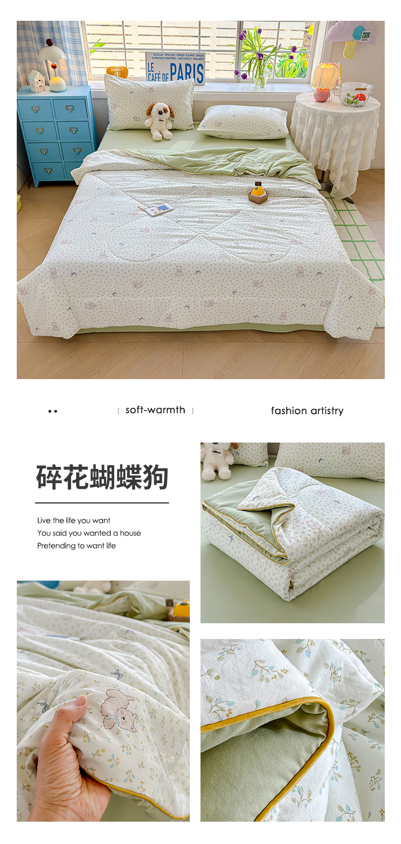 商品名称:美派 2026新款古法水洗云朵棉云感纱夏被夏凉被空调被 碎花蝴蝶狗
