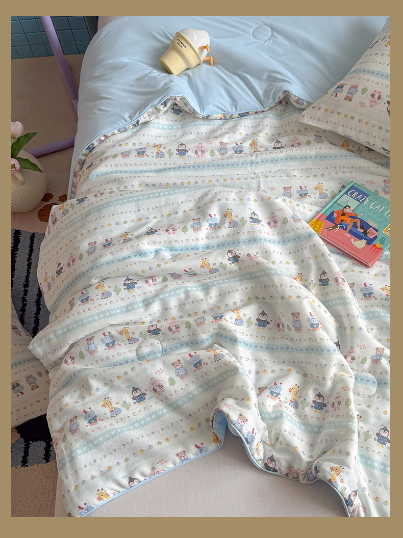 • 91家纺网 家纺一手货源 找家纺 麦伦家居 2026新品双层纱小冰皮夏被夏凉被空调被 软萌小森林