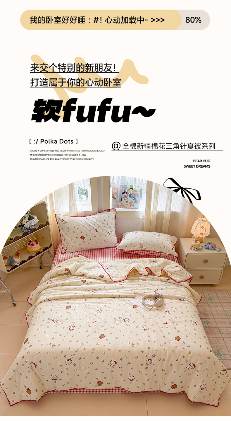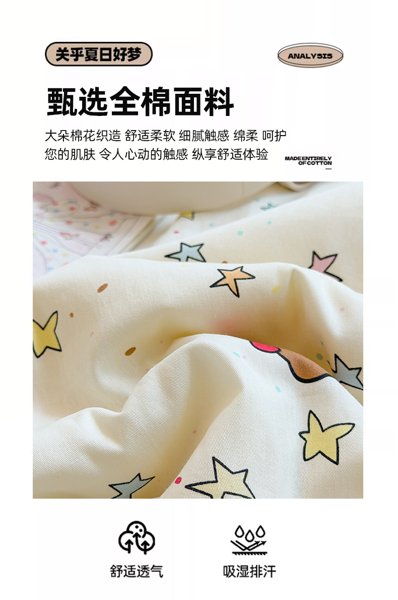 • 91家纺网 家纺一手货源 找家纺 沐辰 2026新款A类贝壳边全棉纯棉棉花夏被夏凉被空调被 星星猫