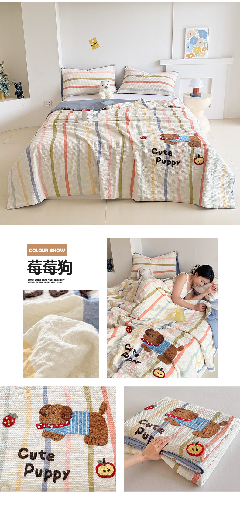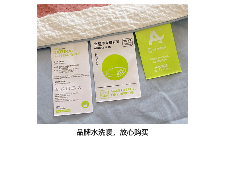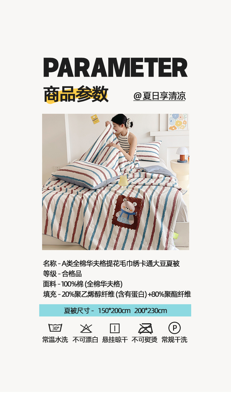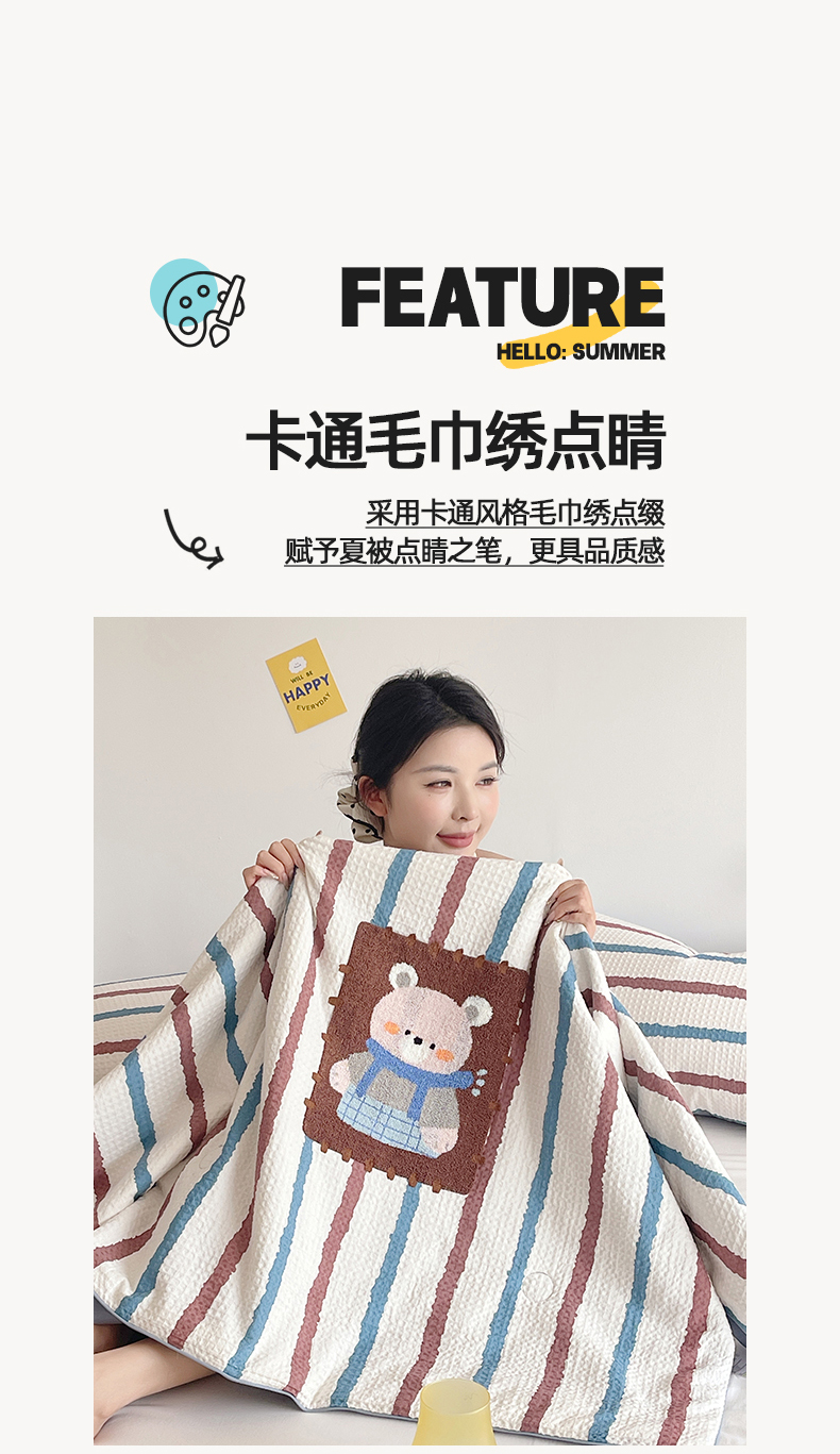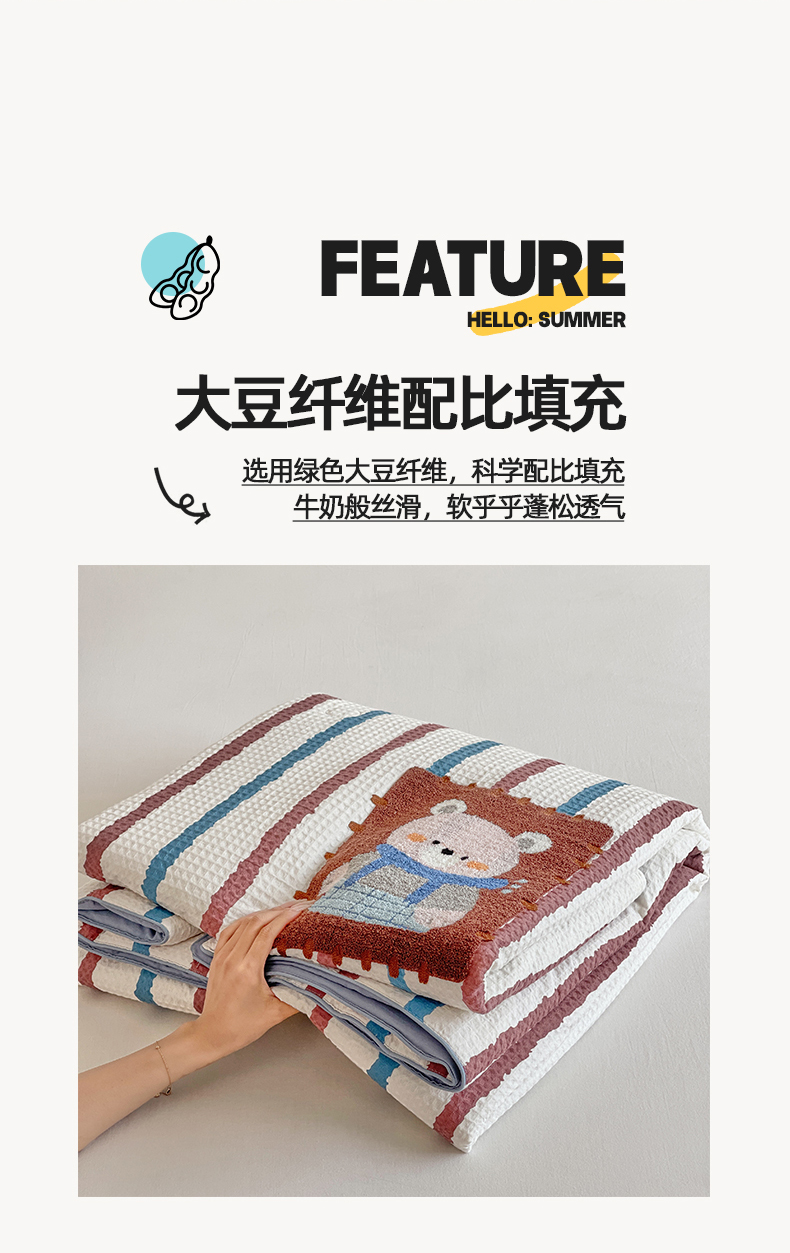 商品名称:(总)莱宁被业 2026新款A类全棉华夫格提花毛巾绣卡通大豆夏被