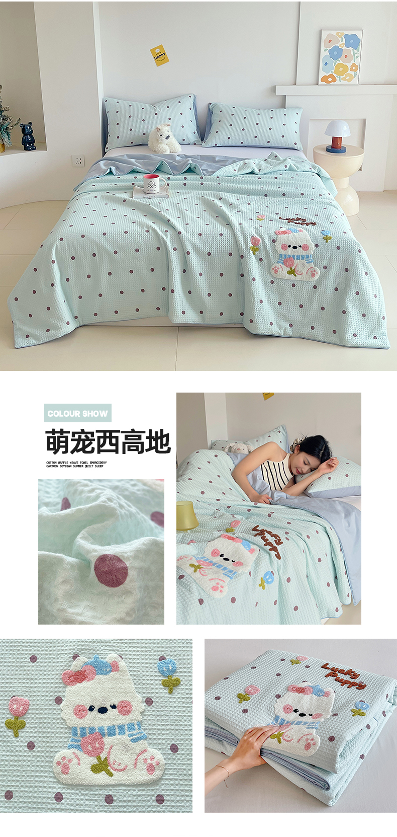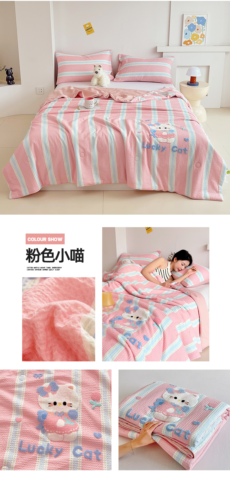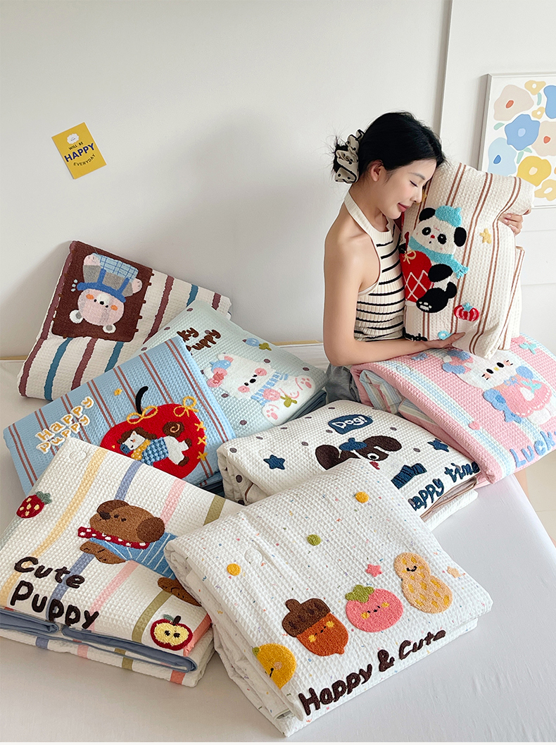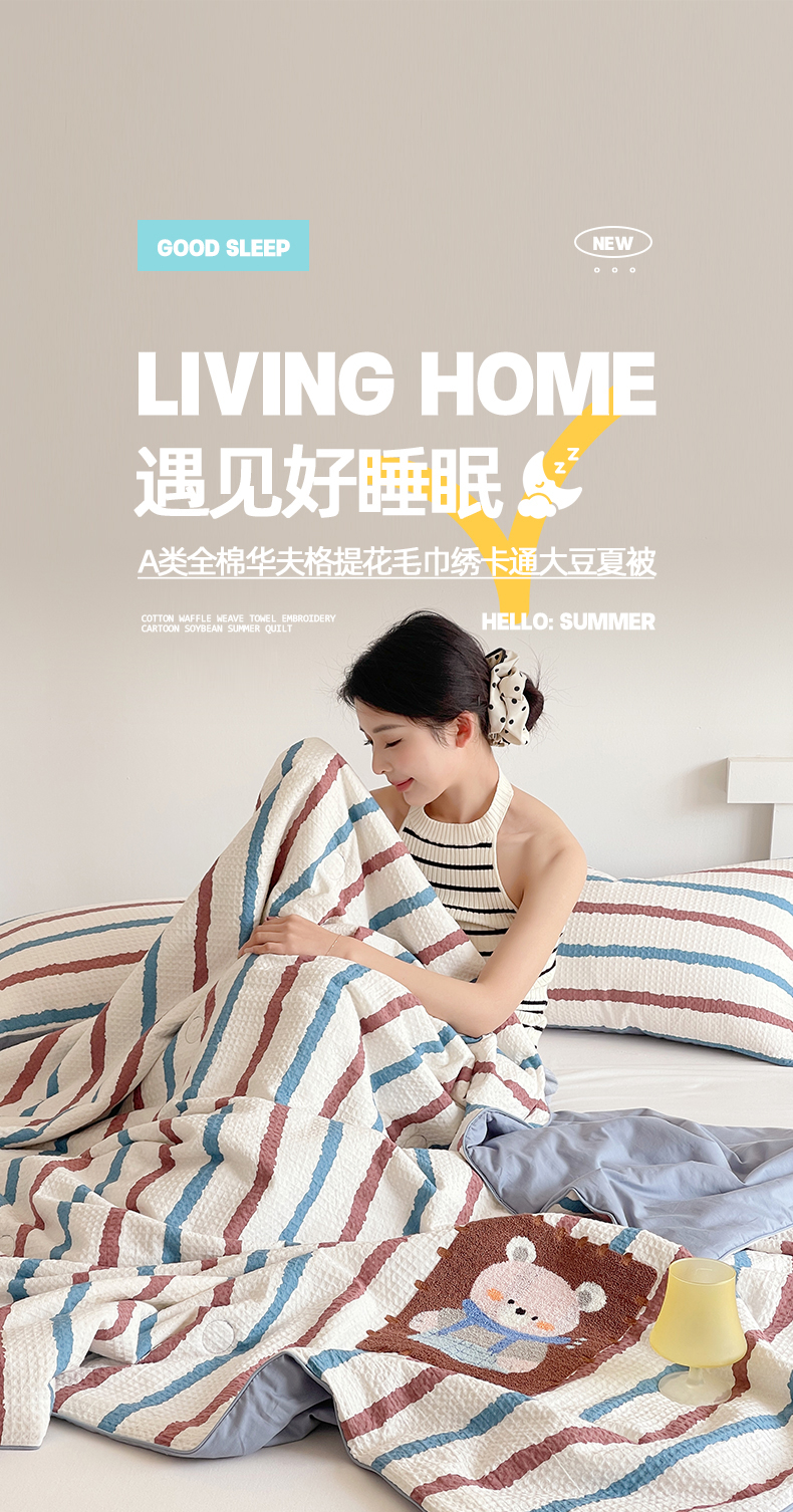 (总)莱宁被业 2026新款A类全棉华夫格提花毛巾绣卡通大豆夏被