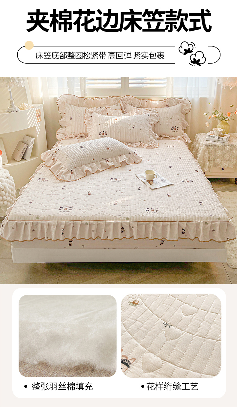 当前位置: 91家纺网 > 商品网购 > 床品套件 > 三件套 > 宜凡家纺 2026新款全棉印花夹棉花边床笠套件②--三件套 森林动物派
