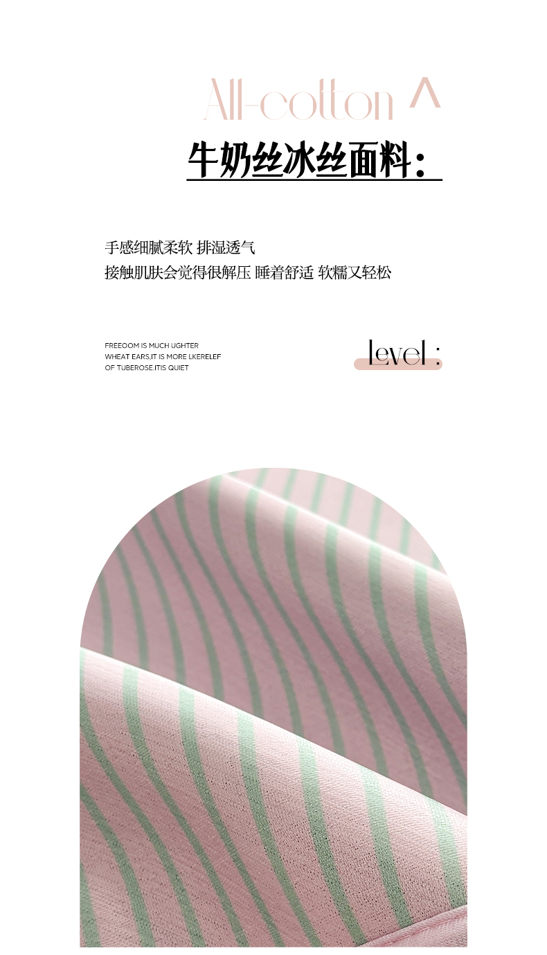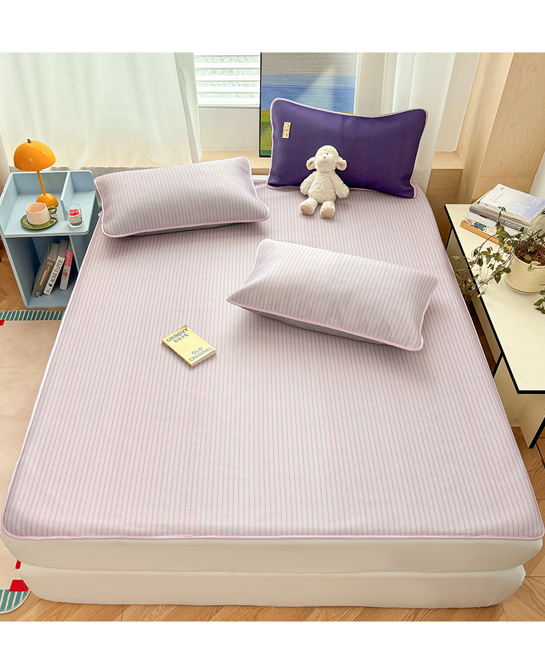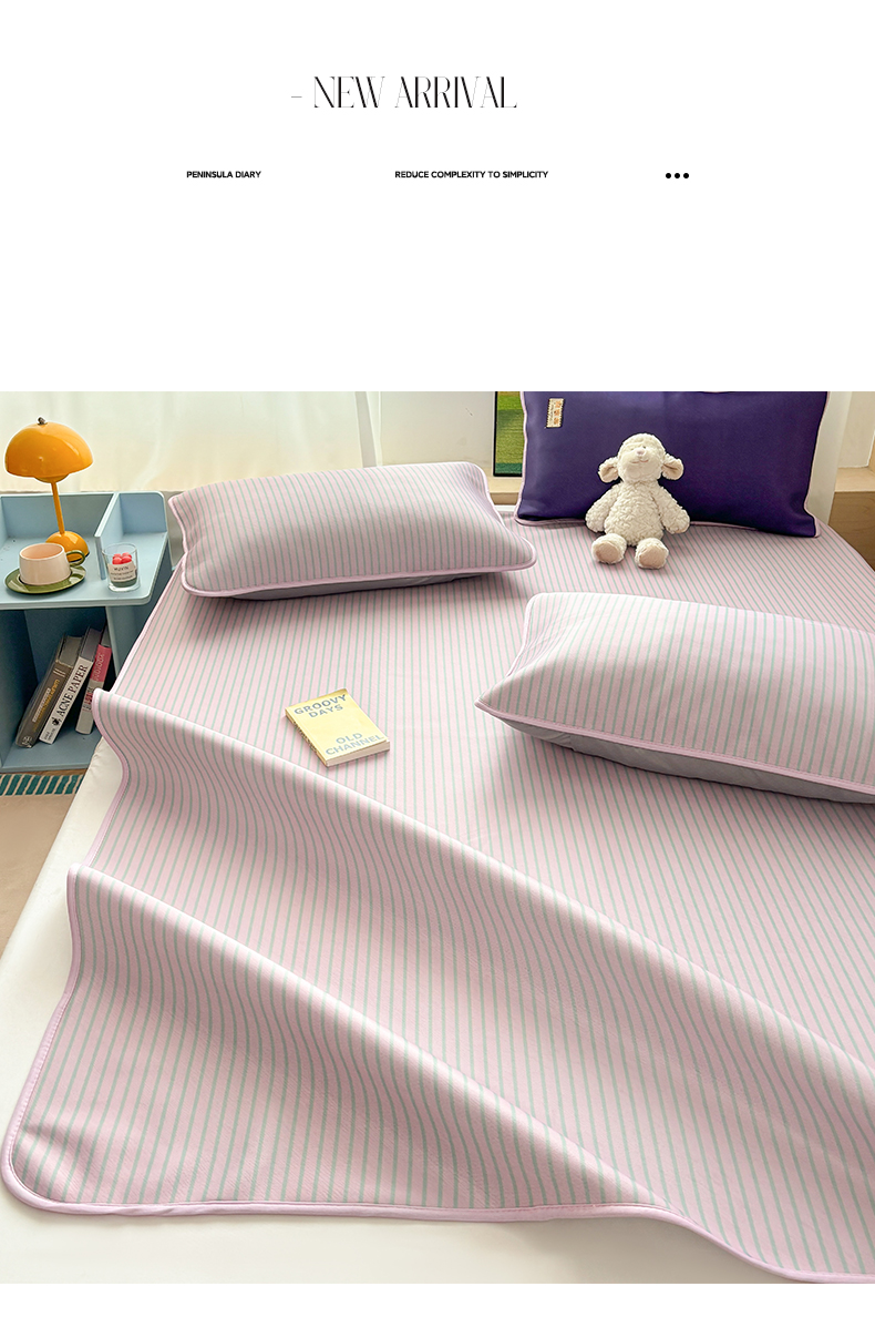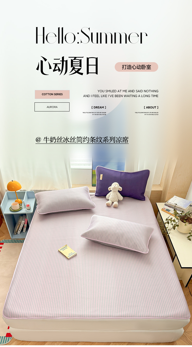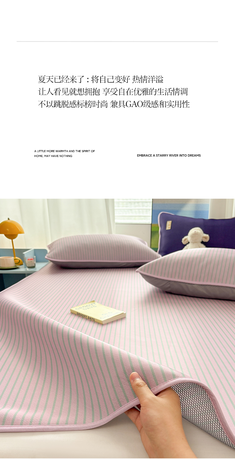 雅居纺家纺 2026新款简约条纹系列凉席牛奶丝三明治底冰丝凉席 简约豆沙条