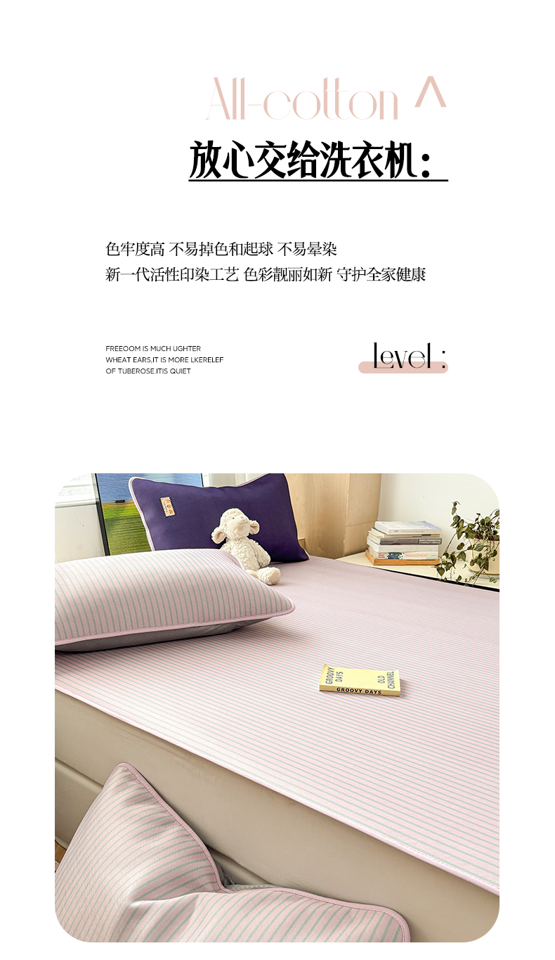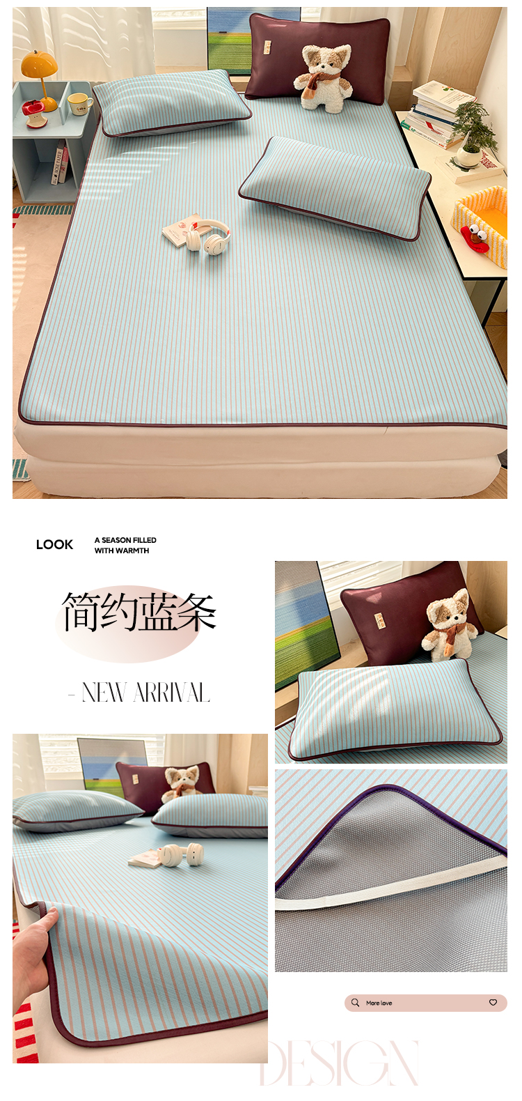 (总)雅居纺家纺 2026新款简约条纹系列凉席牛奶丝三明治底冰丝凉席,简约豆沙条,简约卡其条,简约蓝条,简约亮明黄条,简约绿条