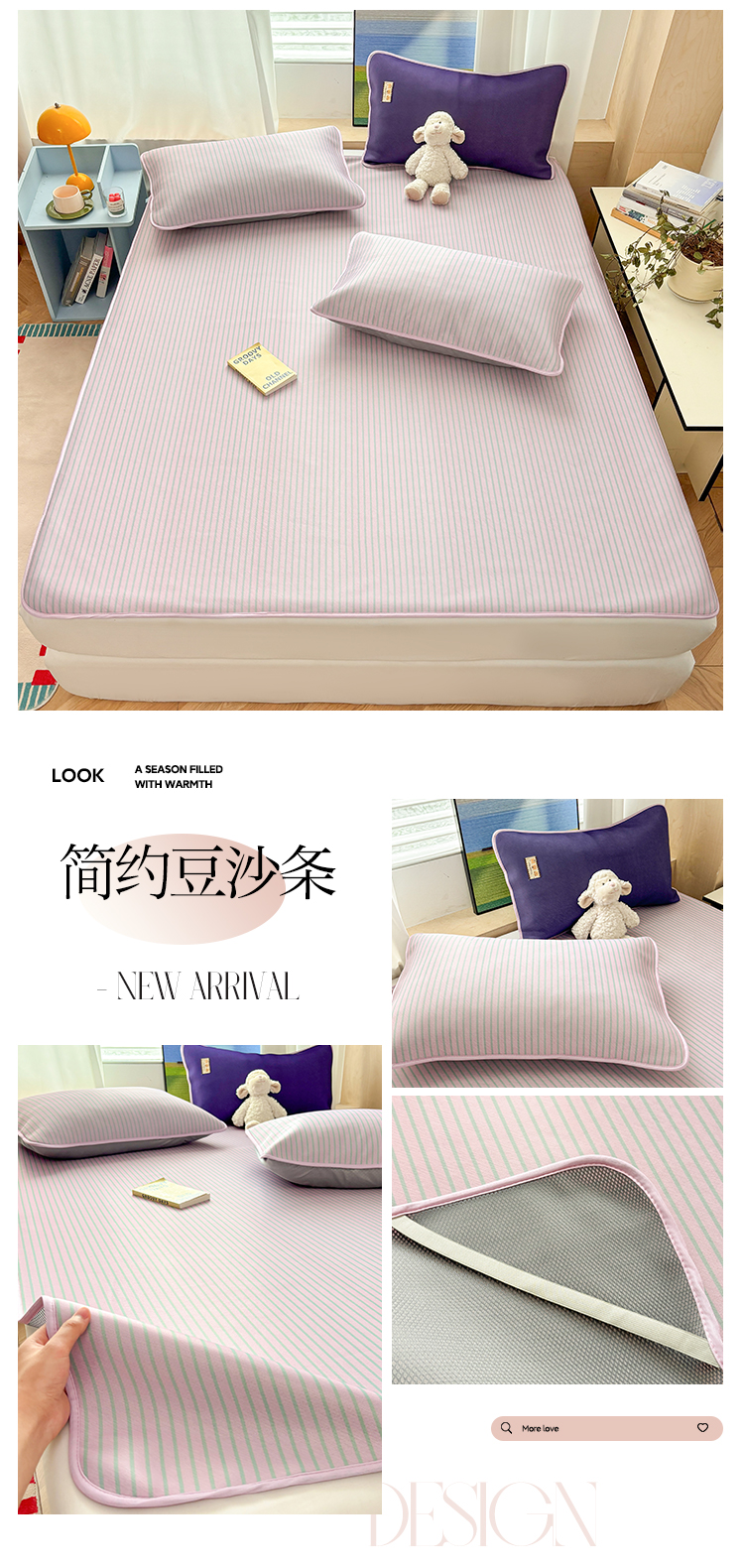 商品名称:雅居纺家纺 2026新款简约条纹系列凉席牛奶丝三明治底冰丝凉席 简约豆沙条