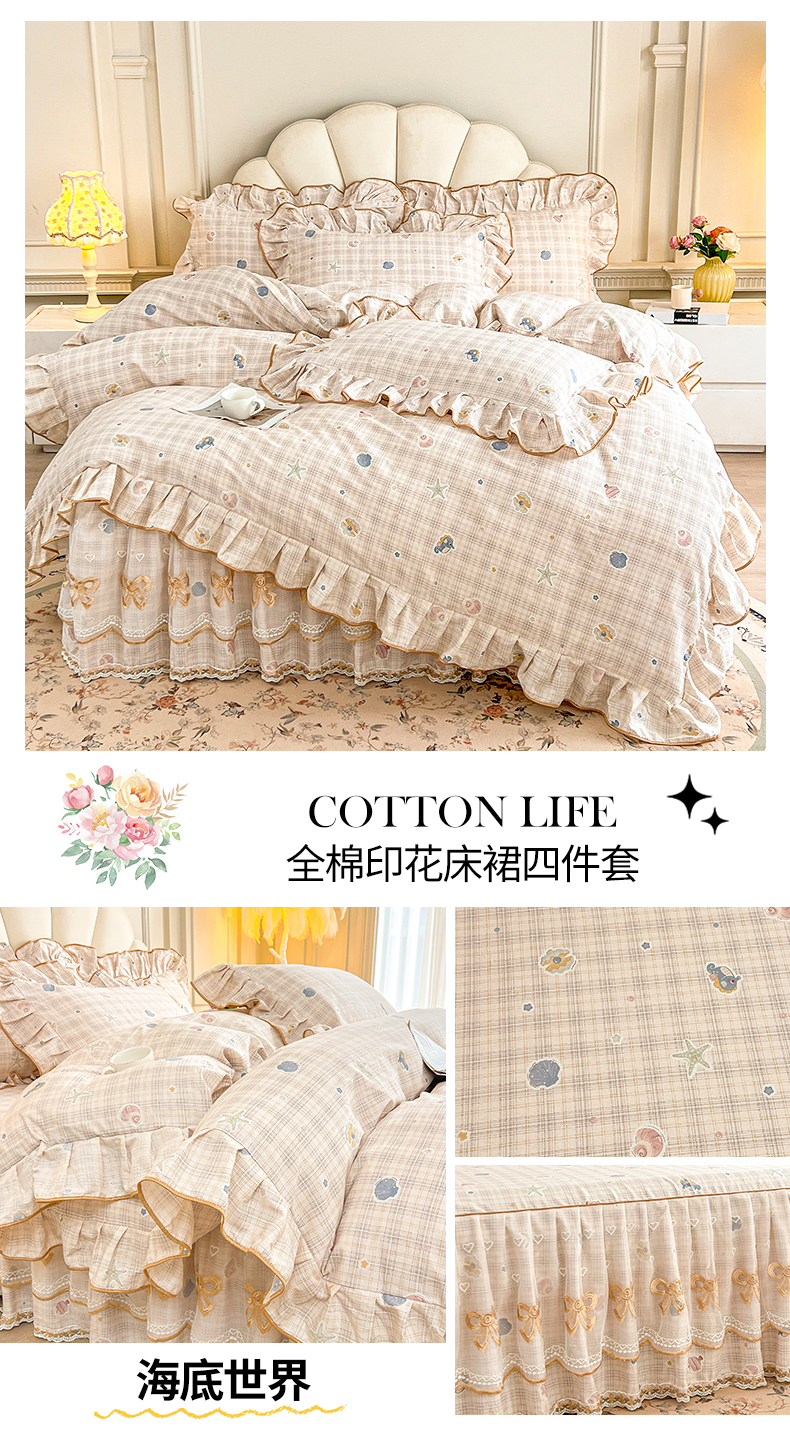 当前位置: 91家纺网 > 商品网购 > 床品套件 > 四件套 > 全棉普通四件套 > (总)宜凡家纺 2026新款全棉公主风单层床裙四件套②