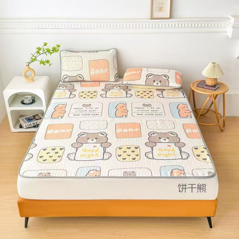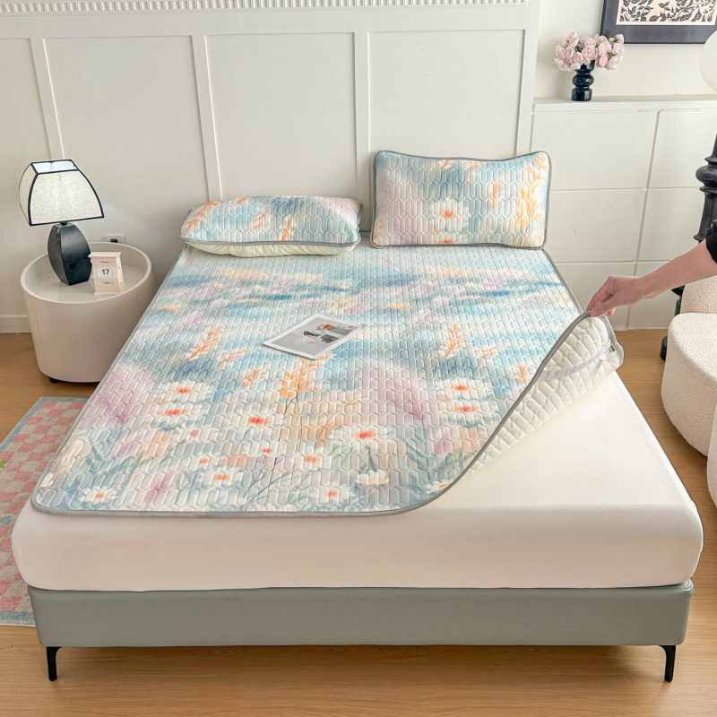 商品名称:梵克保罗 2026新款凉感丝乳胶凉席印花三件套绑带款乳胶条席床单 浅夏