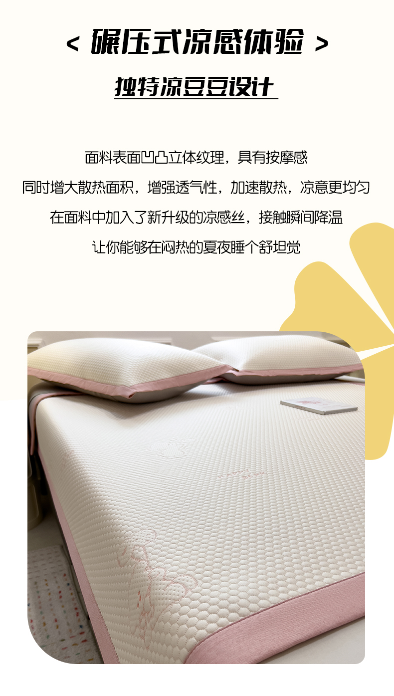(总)倾慕家纺 2026春夏新款全PE冰豆豆全包围床笠款凉席席子,箭纹粉,箭纹灰,箭纹卡其,箭纹蓝,箭纹绿,箭纹米白,菱形泡粉,菱形泡灰,菱形泡蓝,菱形泡绿,菱形泡米白,菱形泡香槟