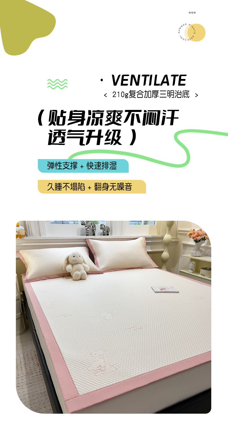 倾慕家纺 2026新款PE时尚风豆豆凉席卡通系列--床席款 爱心熊兔床席款