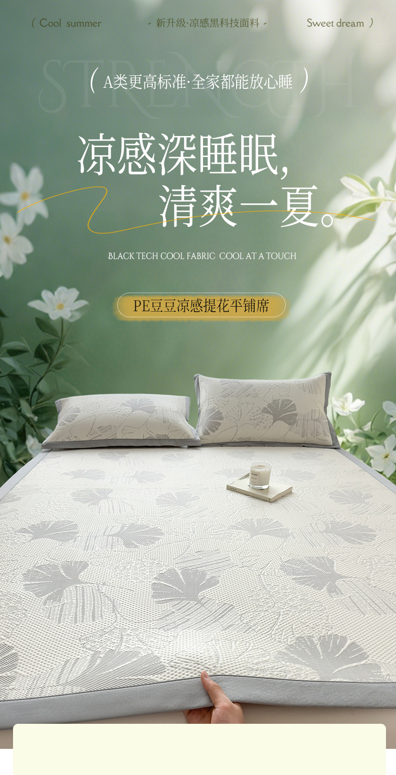 (总)倾慕家纺 2026新款PE时尚风豆豆凉席花卉系列--床席款,布达春雨床席款,大叶绿床席款,枫叶床席款,满江花床席款,迷宫灰床席款,树树相邻床席款,夏日清新卡其床席款,夏日清新蓝床席款,夏日清新绿床席款,写意玫瑰床席款,杏叶灰床席款,杏叶卡其床席款