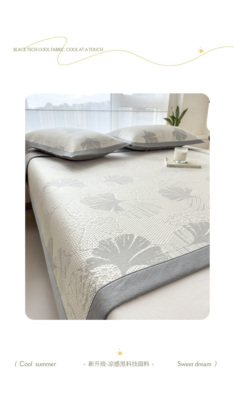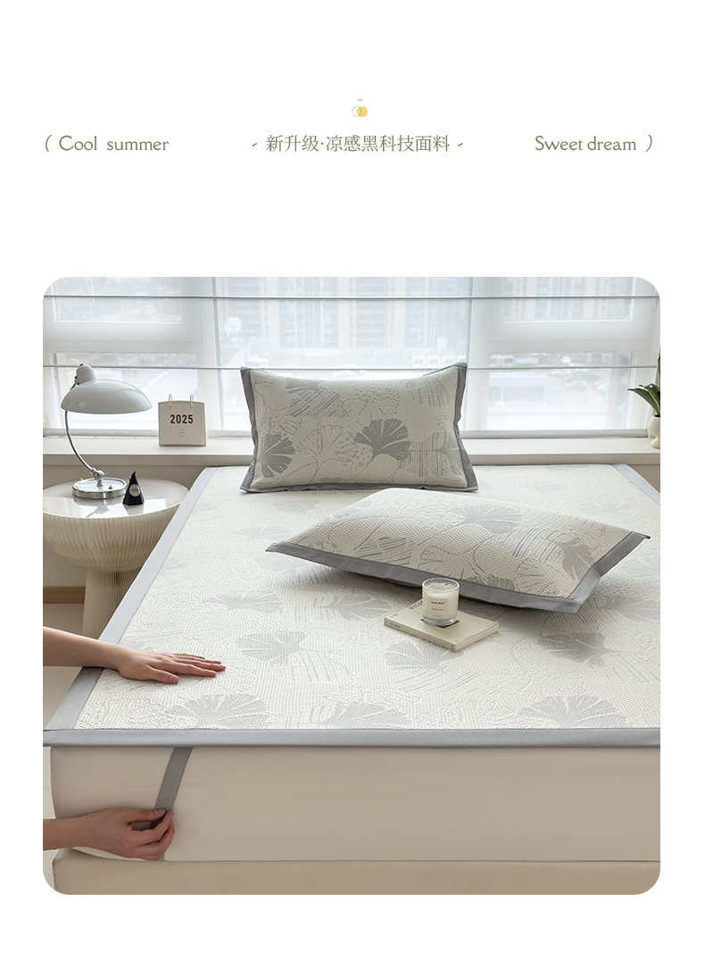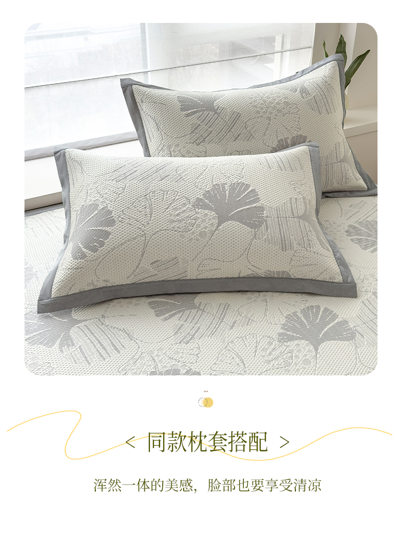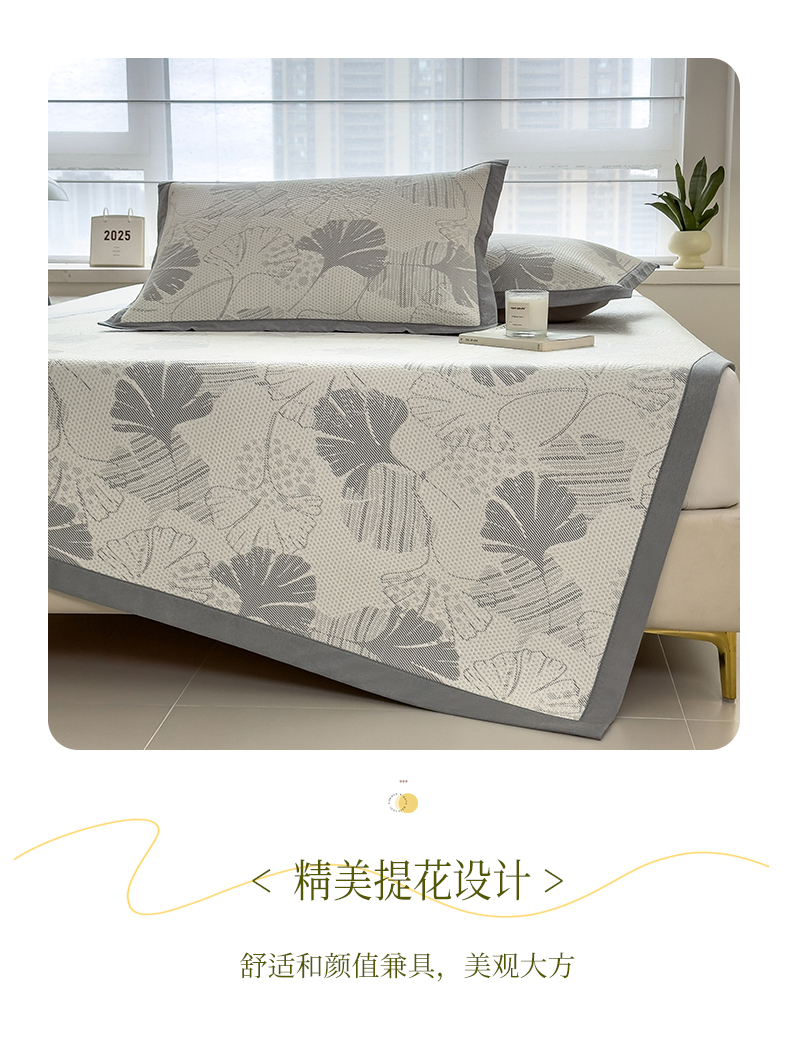 倾慕家纺 2026新款PE时尚风豆豆凉席花卉系列--床席款 杏叶灰床席款