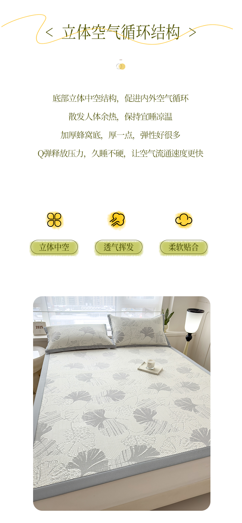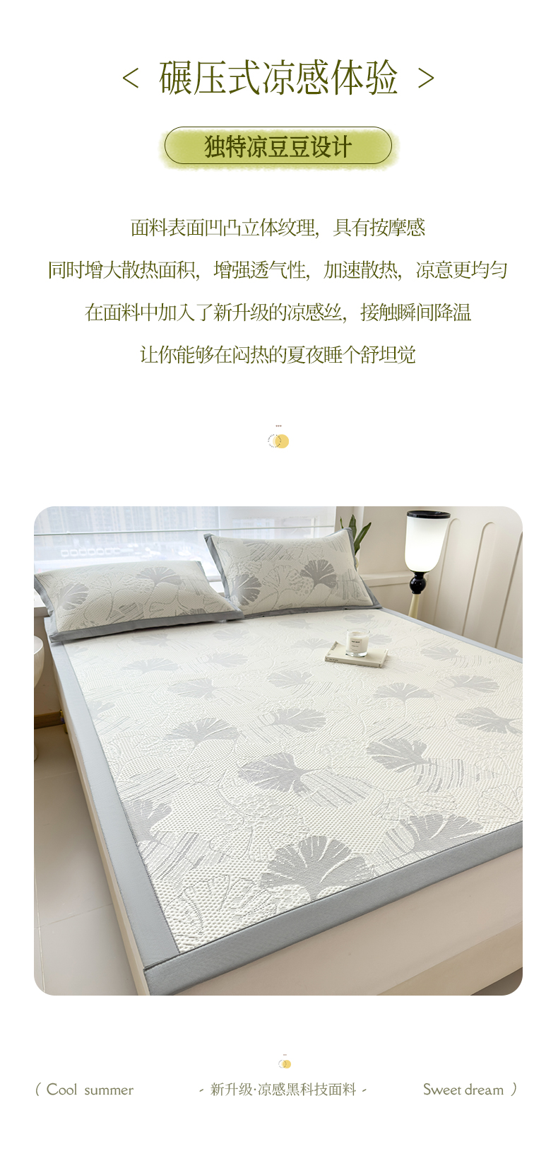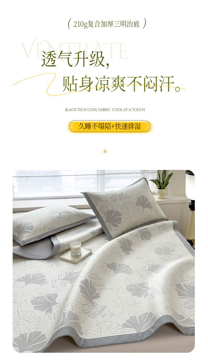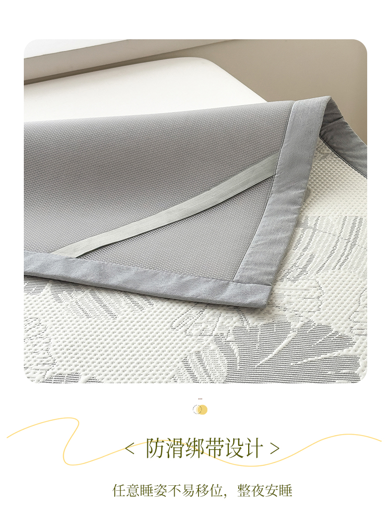 倾慕家纺 2026新款PE时尚风豆豆凉席花卉系列--床席款 杏叶灰床席款
