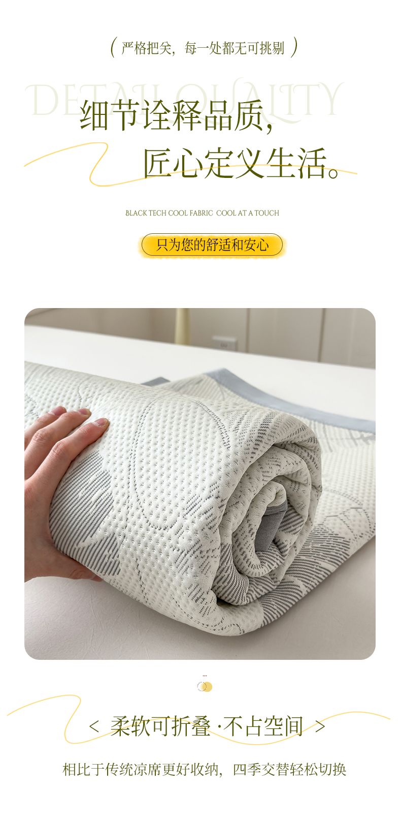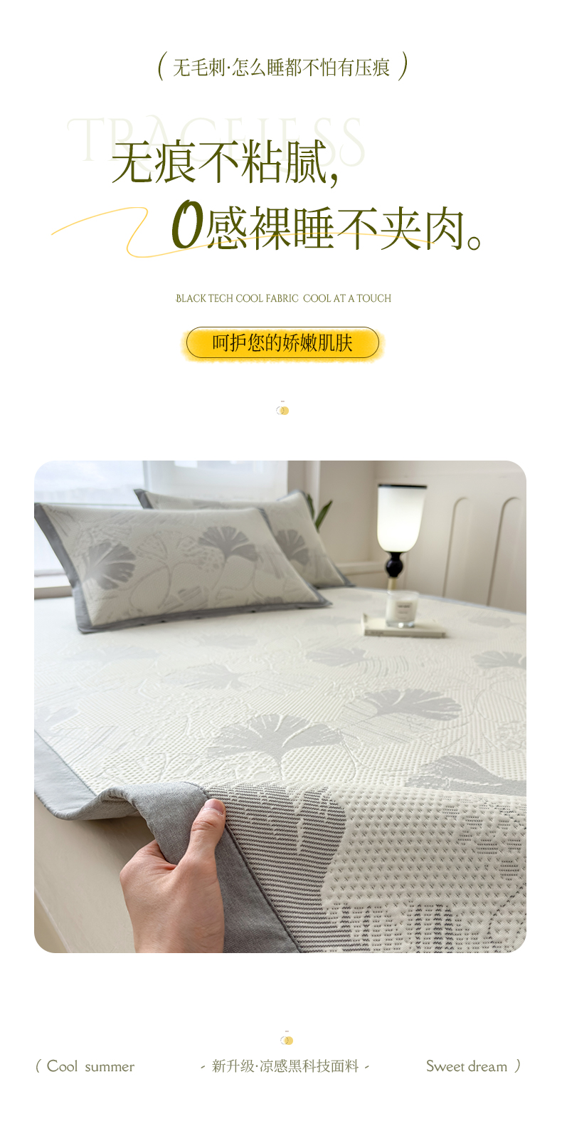商品名称:倾慕家纺 2026新款PE时尚风豆豆凉席花卉系列--床席款 杏叶灰床席款