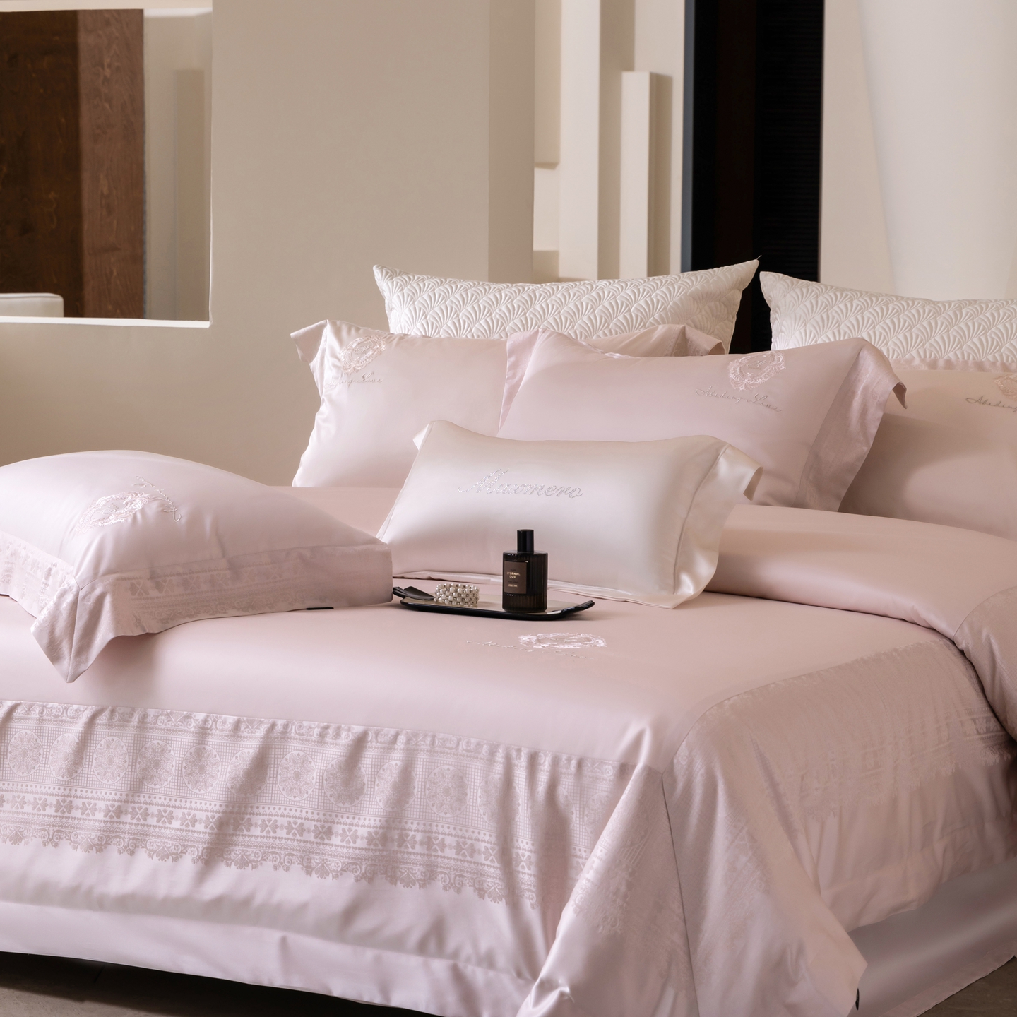 (总)馨蕊家居 2026春夏新款天丝棉提花刺绣四件套-丽笙,棉丽笙-北卡蓝,棉丽笙-初夏粉,棉丽笙-奶咖,棉丽笙-婉若紫