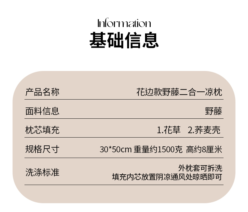 当前位置: 91家纺网 > 商品网购 > 枕头/枕芯/保健枕/颈椎枕 > 枕头枕芯 > (总)仁宇枕业 2026新款新品花边款野藤二合一夏凉花草荞麦枕头枕芯