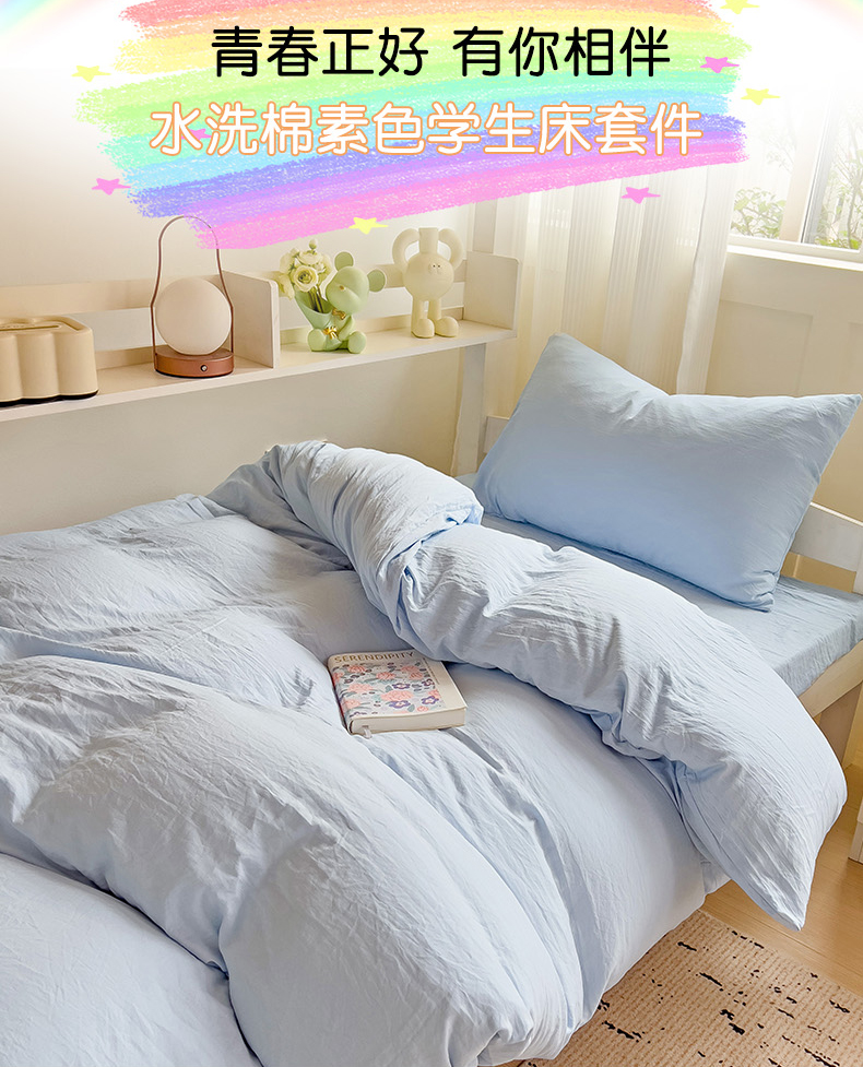 当前位置: 91家纺网 > 商品网购 > 床品套件 > 四件套 > 水洗棉四件套 > 欧妮家纺 2025新款纯色水洗棉四件套学生宿舍床单被套三件套床上用品-【含买家秀】 纯色-浅蓝