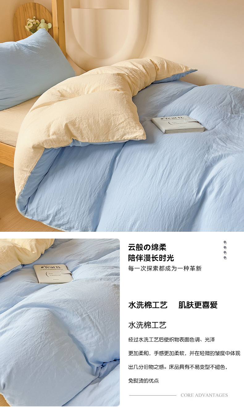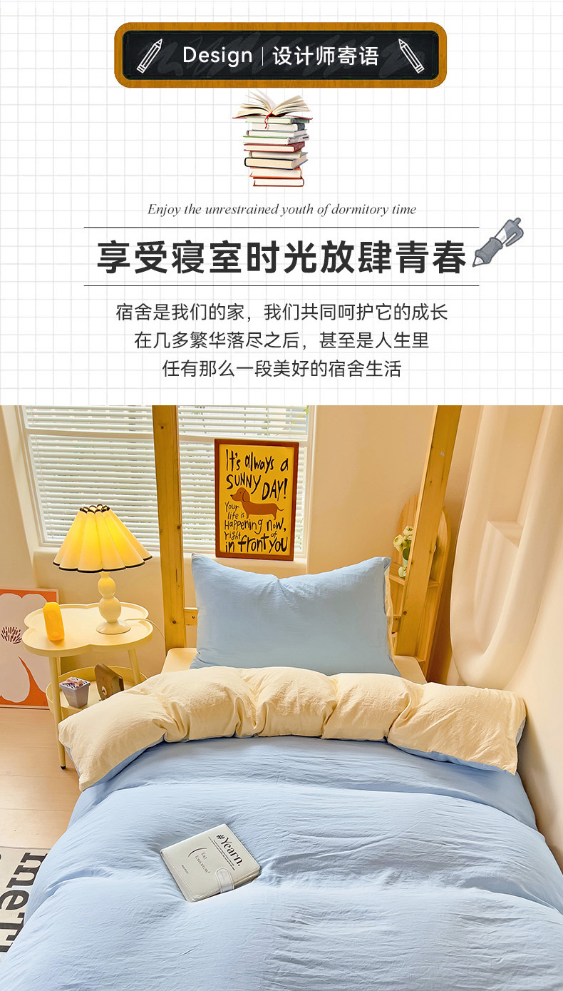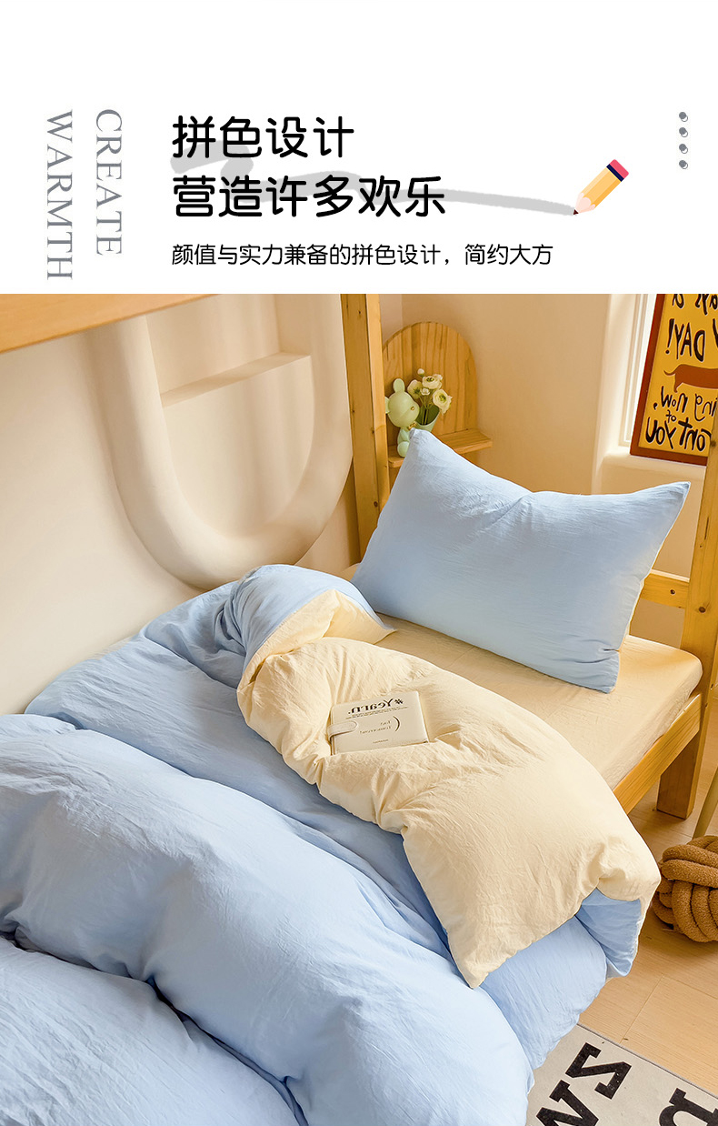 当前位置: 91家纺网 > 商品网购 > 床品套件 > 四件套 > 水洗棉四件套 > 欧妮家纺 2025新款纯色双拼水洗棉四件套学生宿舍上下铺床单被套三件套床上用品-【含买家秀】 双拼系列-浅蓝黄