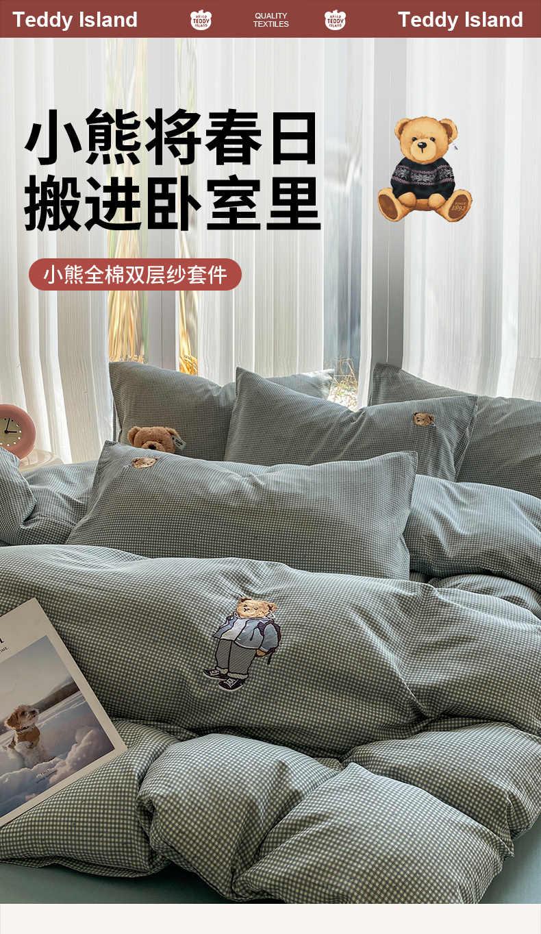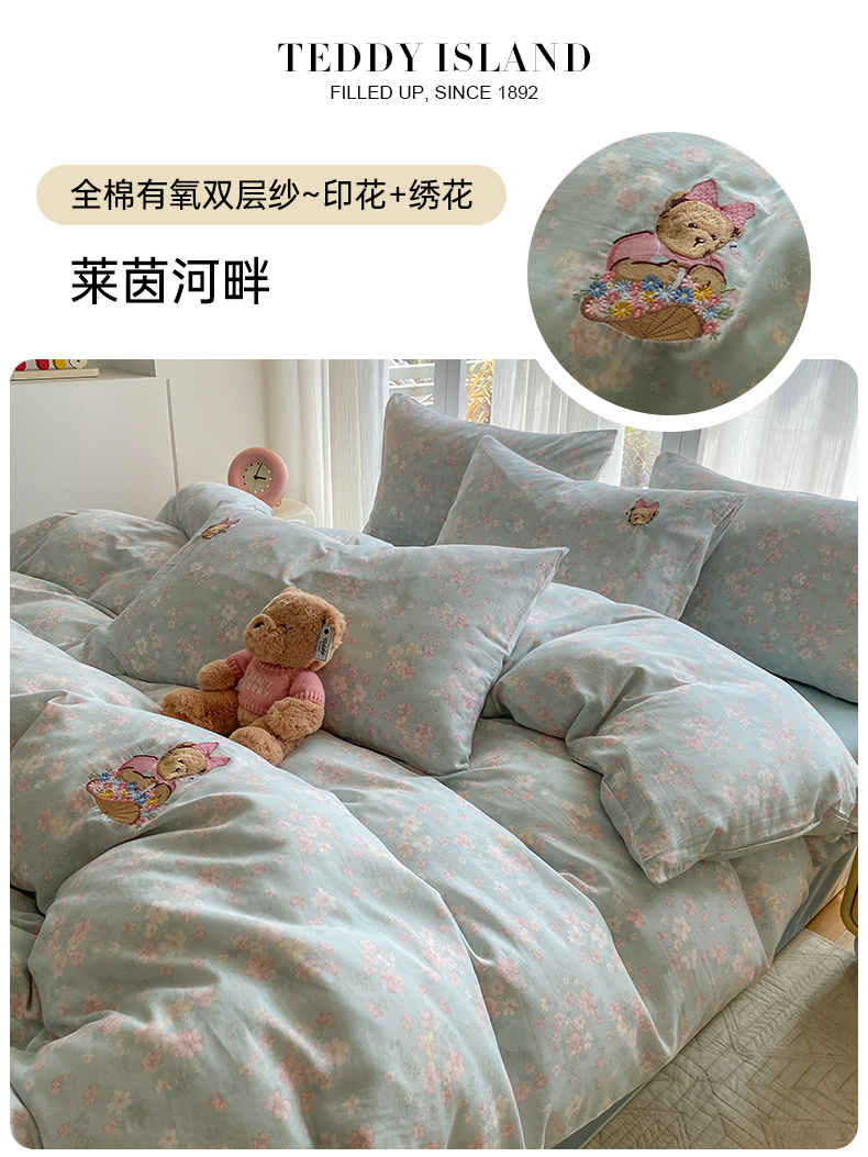 当前位置: 91家纺网 > 商品网购 > 床品套件 > 四件套 > 全棉普通四件套 > 尚品本色 2026新款全棉纯棉双层纱印花刺绣四件套 格调