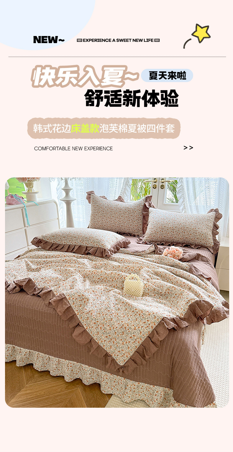 (总)韩约家纺 2026春夏新款韩式花边泡芙棉床单款夏被夏凉被空调被四件套,奶油泡芙,安暖如夏,宝妮,波点红,花春城,马上有钱,苏糖咖,旺旺,微花耳耳,星梦伙伴,星星人,紫色心情