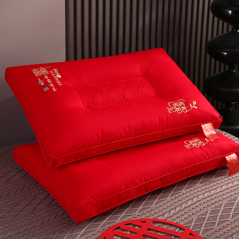 (总)贤内助家纺 2026新款全棉大红婚庆枕芯枕头护肩枕舒适枕羽丝枕,永结同心 48*74cm/只,欢喜你 48*74cm/只,水晶之恋 48*74cm/只,吾家有喜 48*74cm/只,喜上眉梢 48*74cm/只,新婚大喜 48*74cm/只