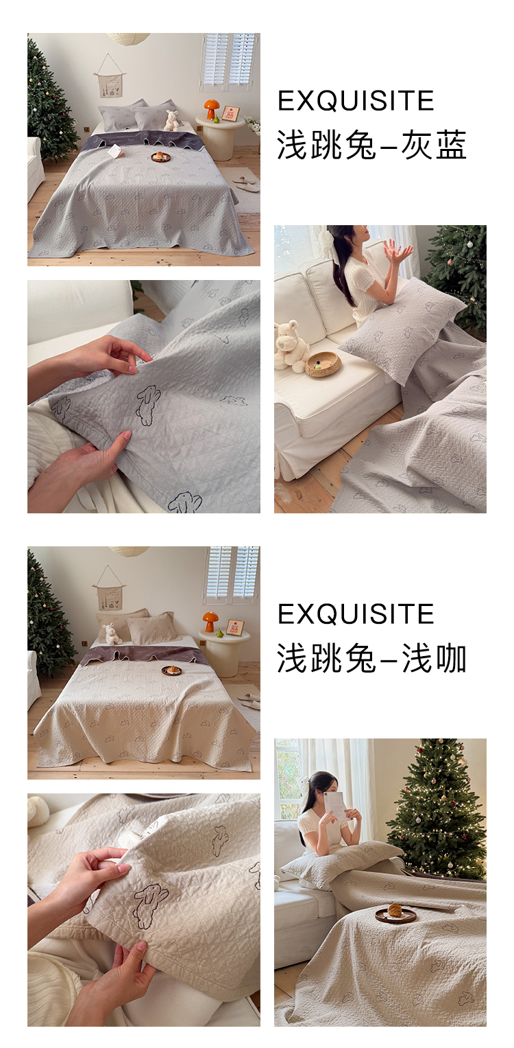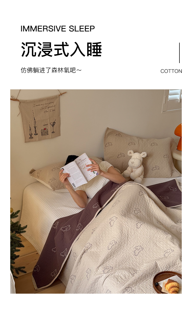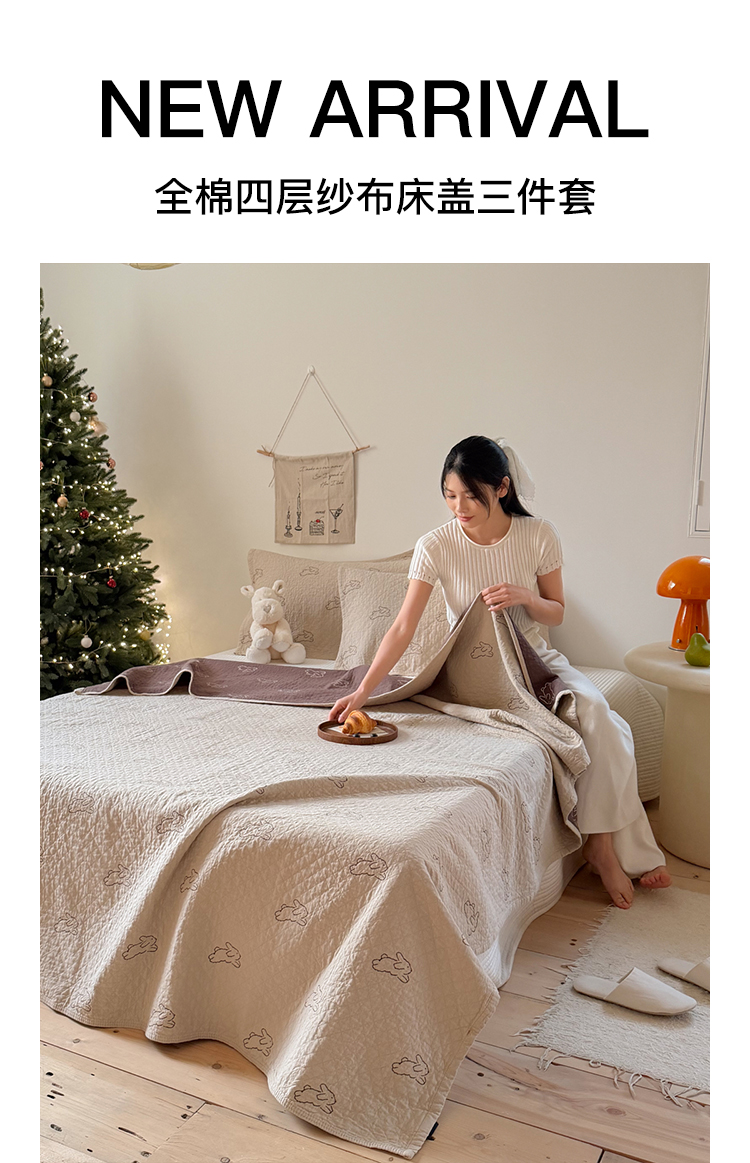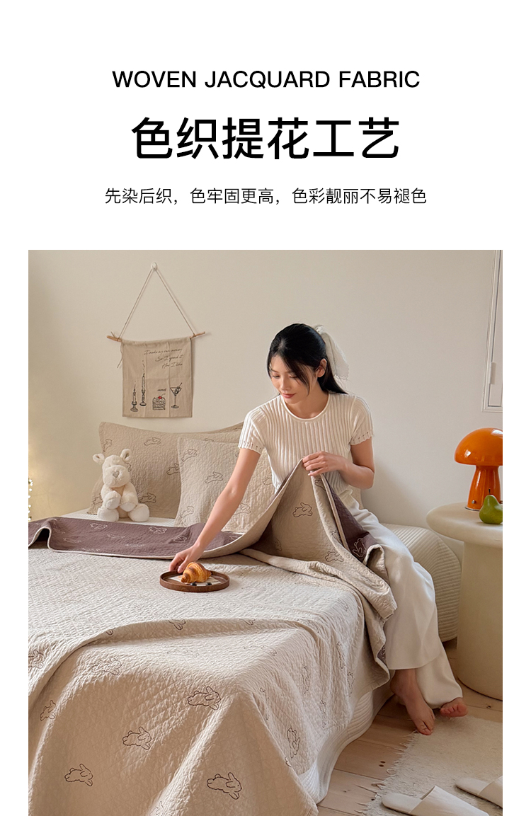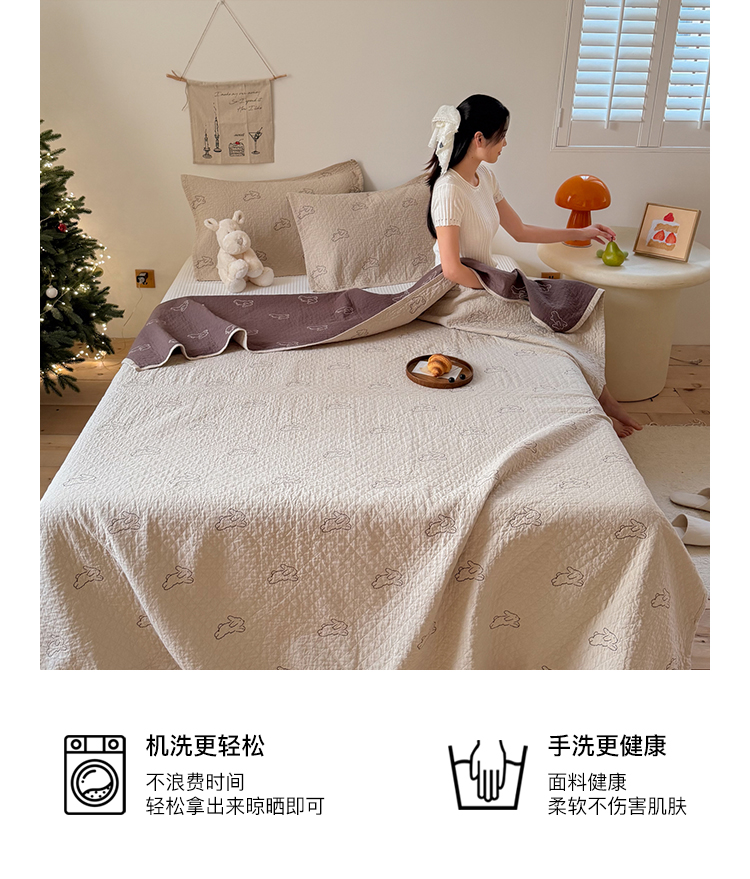 沐瑟家纺 2026春夏新款安心棉床盖三件套 浅跳兔-浅咖色