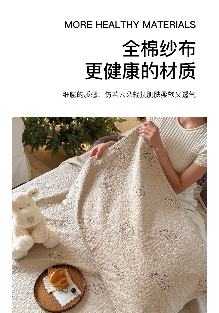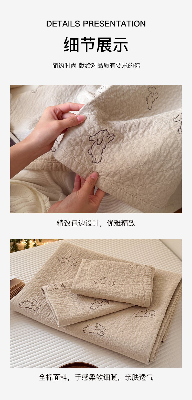 商品名称:沐瑟家纺 2026春夏新款安心棉床盖三件套 浅跳兔-浅咖色