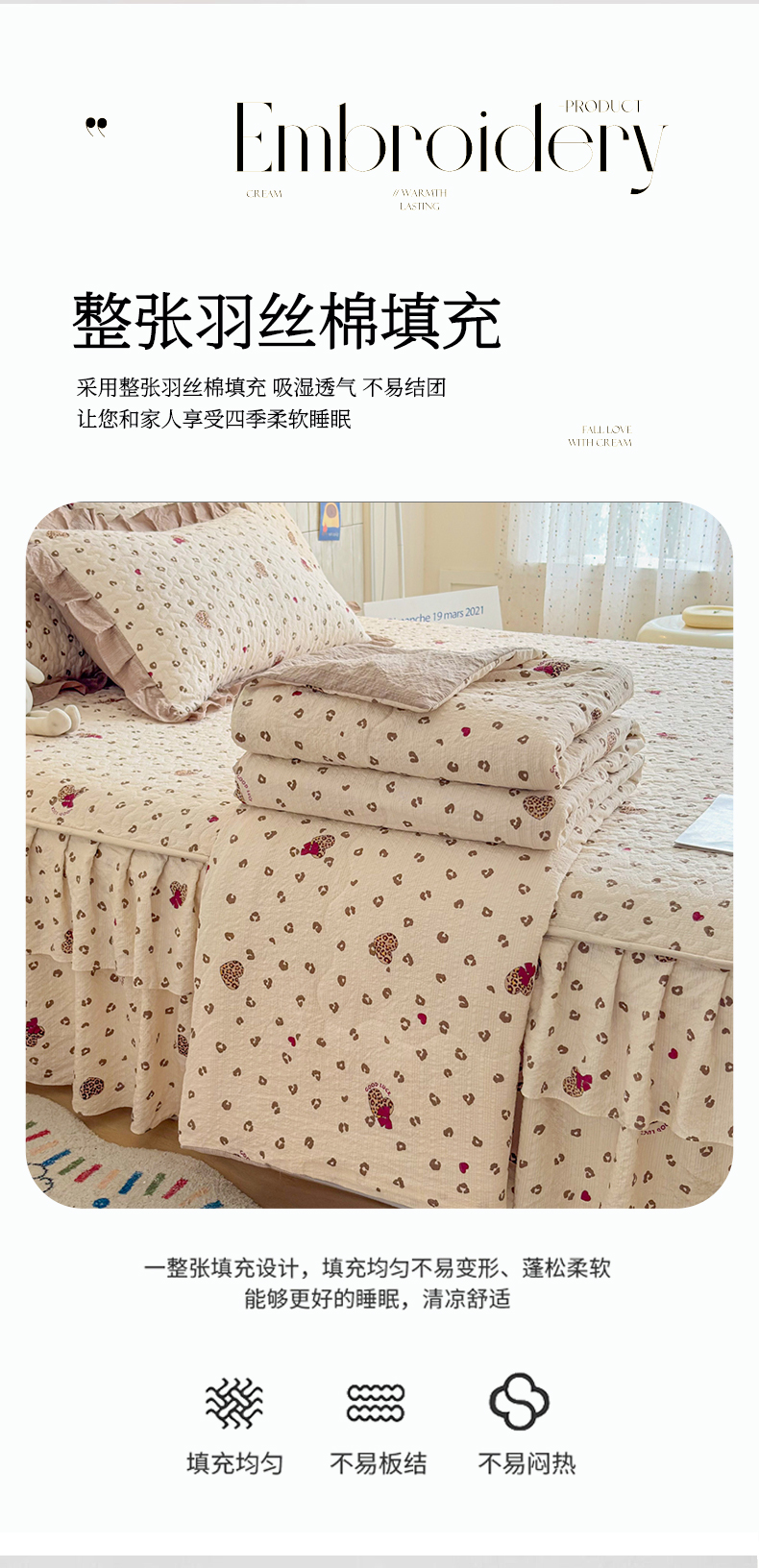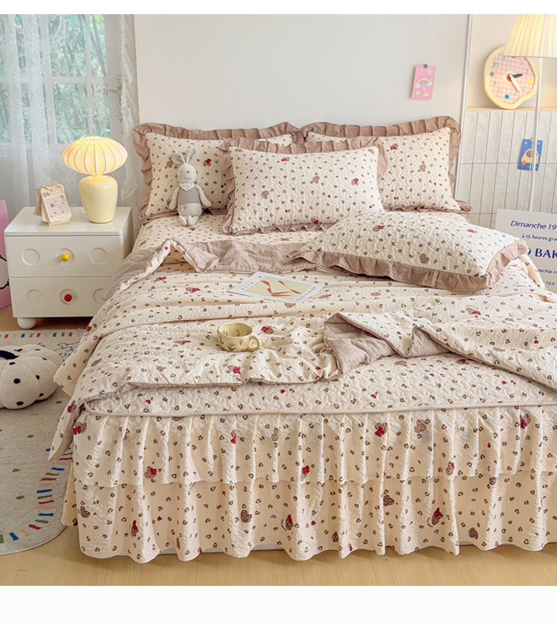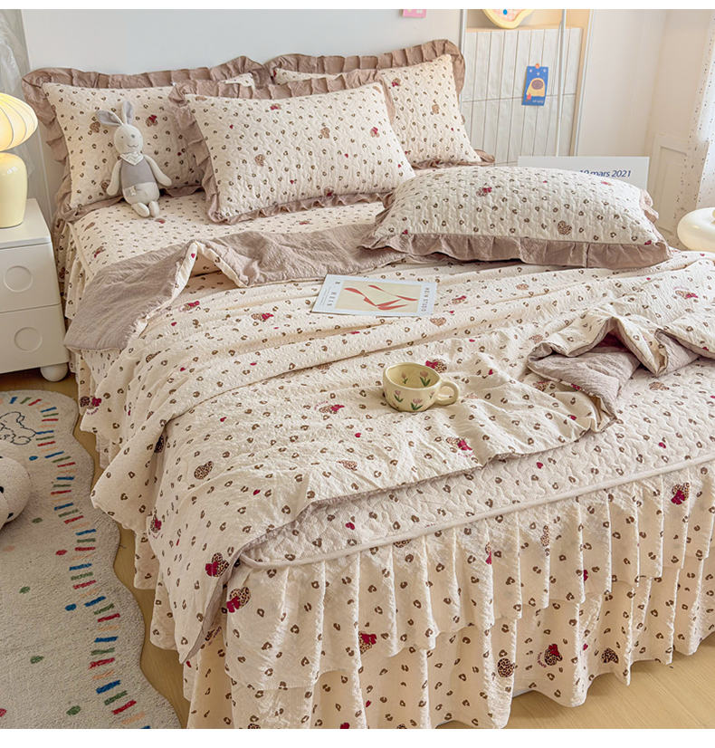 (总)铠畅 2026新款法式宽边水洗棉泡芙纱床盖款夏被四件套,春日小马,粉调爱心,粉雾波点,赫本豹影,红裙花影,红雾波点,红韵玫瑰,黄条萌宠,咖调爱心,玫瑰园,抹茶玫瑰,奶粉kt,奶格蝴蝶结,奶咖kt,奶蓝kt,森系花园,桃心木马,兔小姐,雾蓝波点,薰衣草女孩
