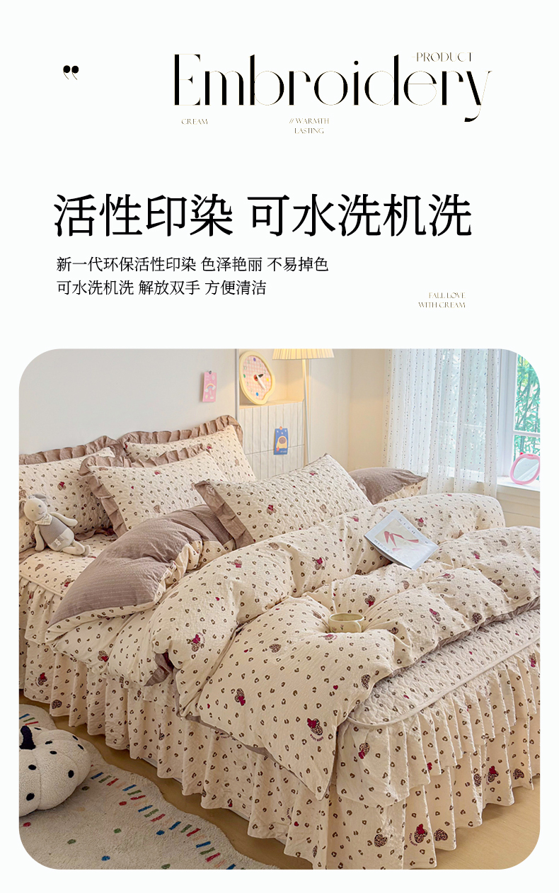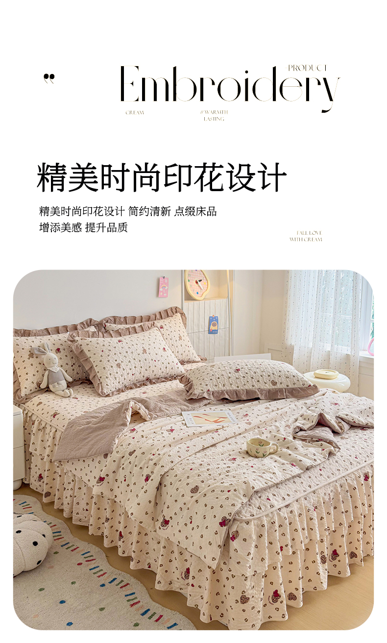 (总)2026 铠畅新款韩系古法韩国水洗棉仿棉云感棉法式浪漫大花边床盖四件套,春日小马,粉调爱心,粉雾波点,赫本豹影,红调花漾,红裙花影,红雾波点,红韵玫瑰,黄条萌宠,咖调爱心,蓝雾波点,玫瑰园,抹茶玫瑰,奶粉kt,奶格蝴蝶结,奶咖kt,奶蓝kt,森系花眠,桃心木马,兔小姐,薰衣草女孩