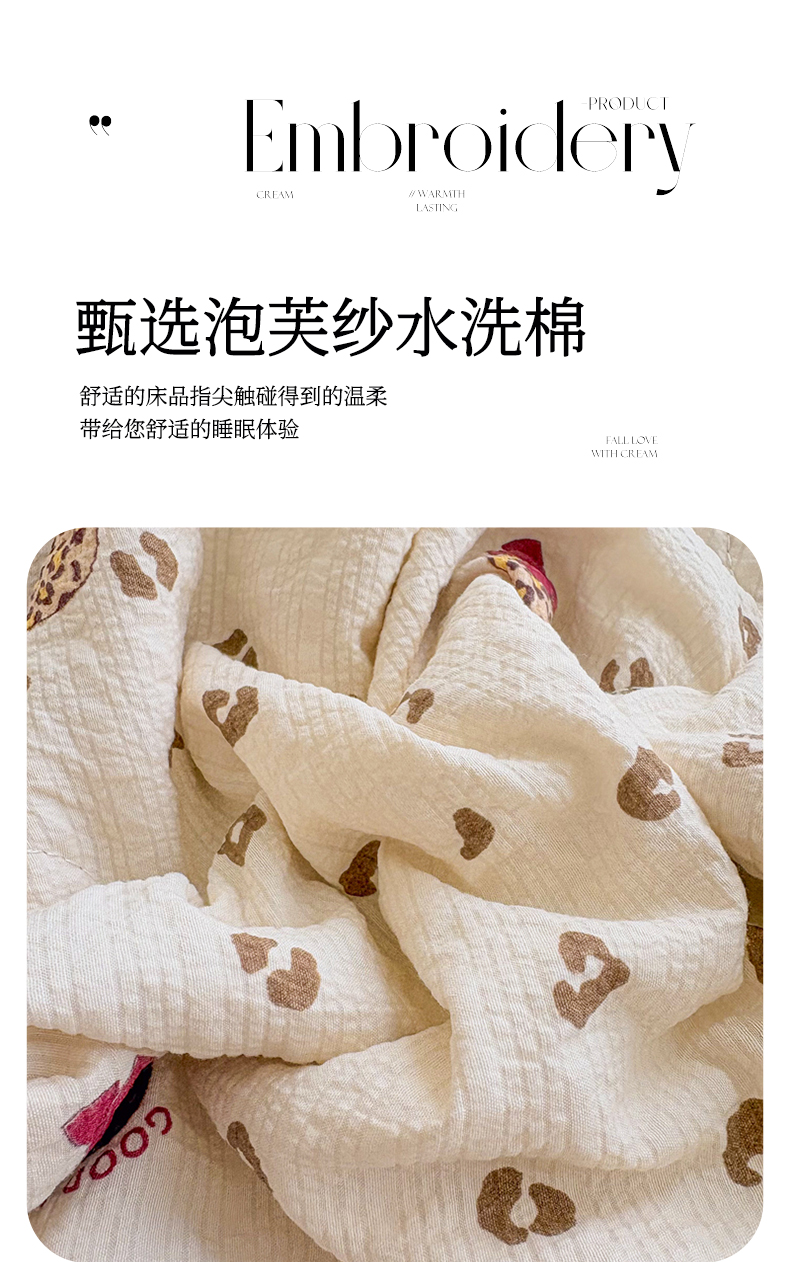 商品名称:铠畅家纺 2026新款泡芙纱水洗棉夏被四件套 奶咖新豹