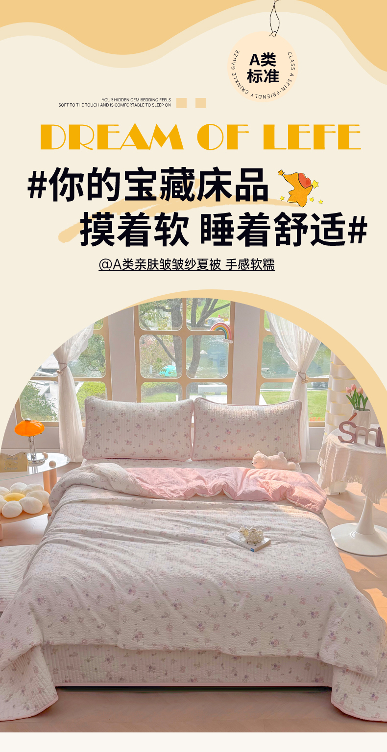 商品名称:悠米悠家 2026春夏新款泡泡纱印花夏被夏凉被空调被 KT玫瑰花园