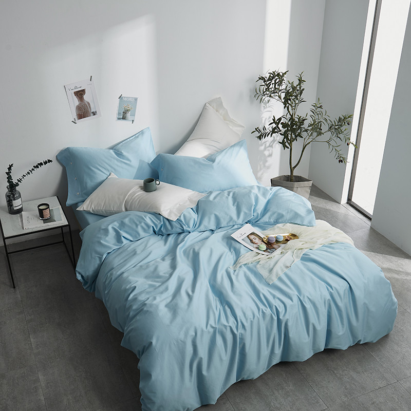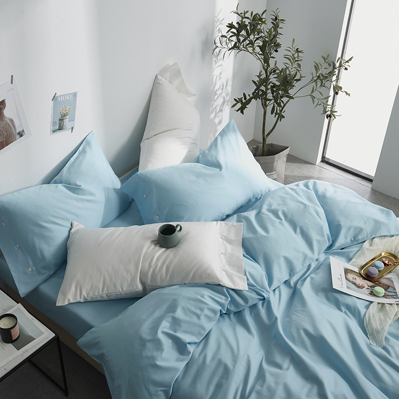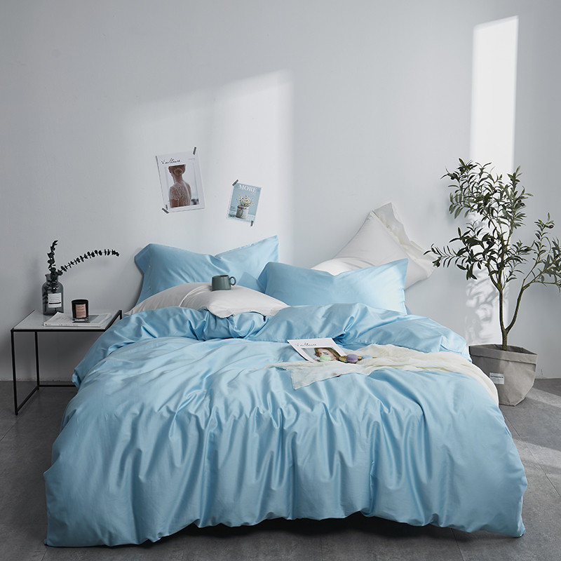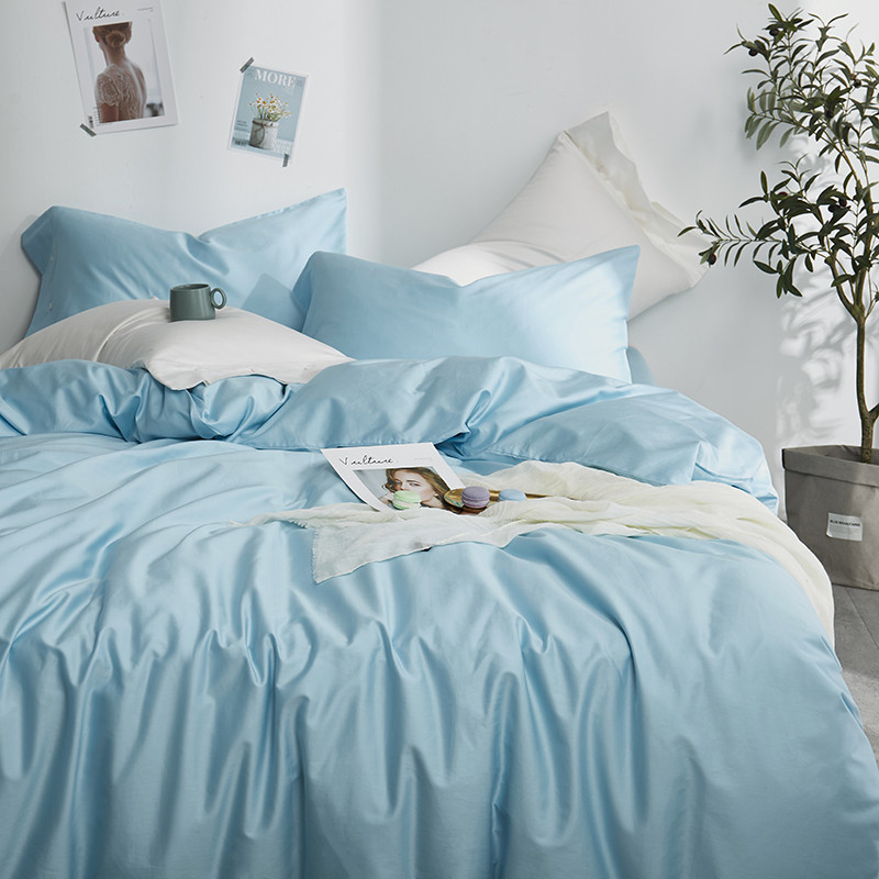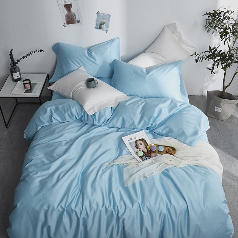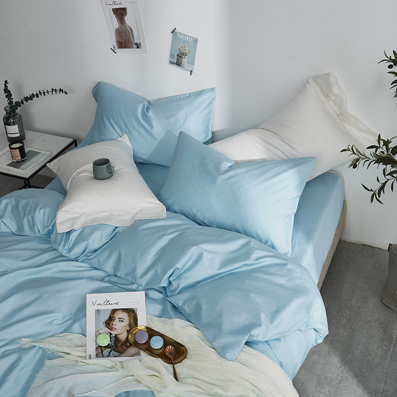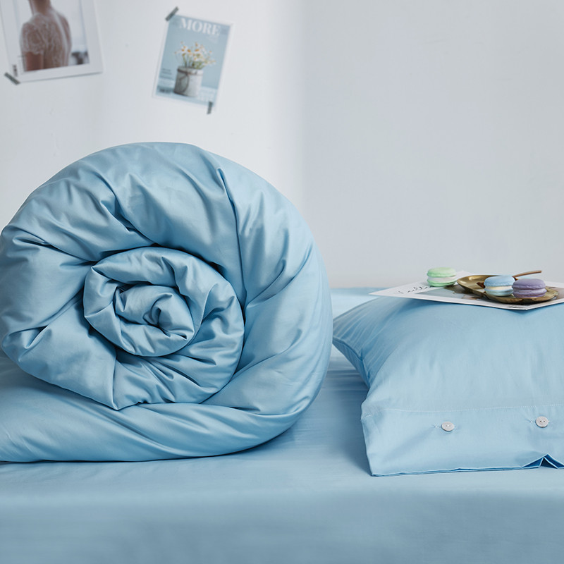 优然居家纺 60支长绒棉纯色四件套天空蓝