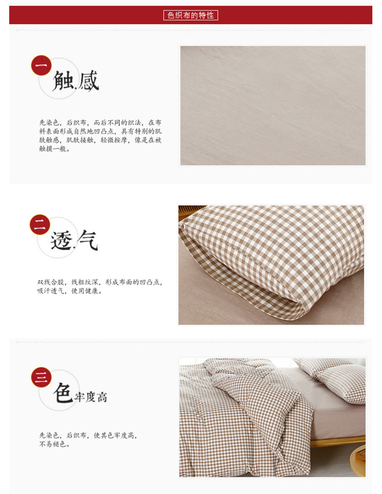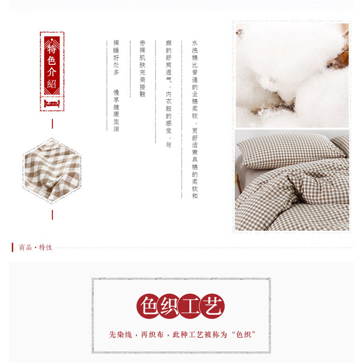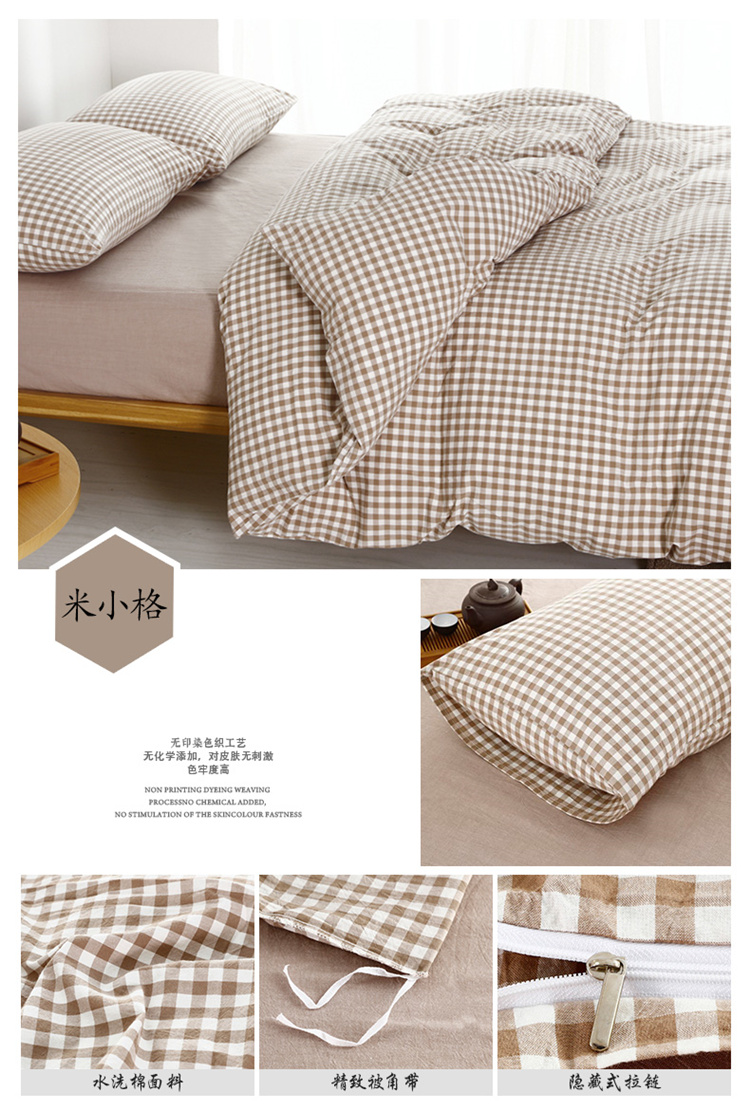 玖玖爱家纺 水洗棉四件套床笠款 米小格