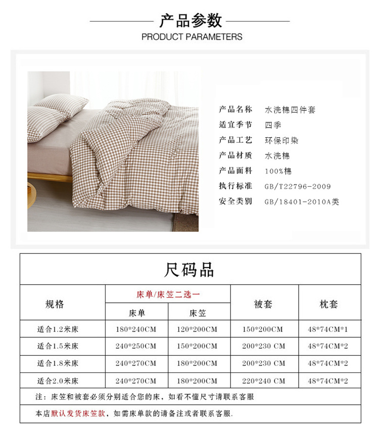 商品名称:玖玖爱家纺 水洗棉四件套床笠款 米小格
