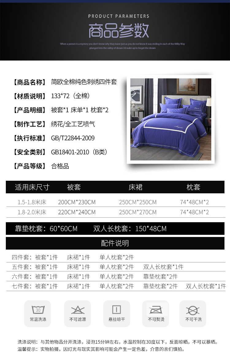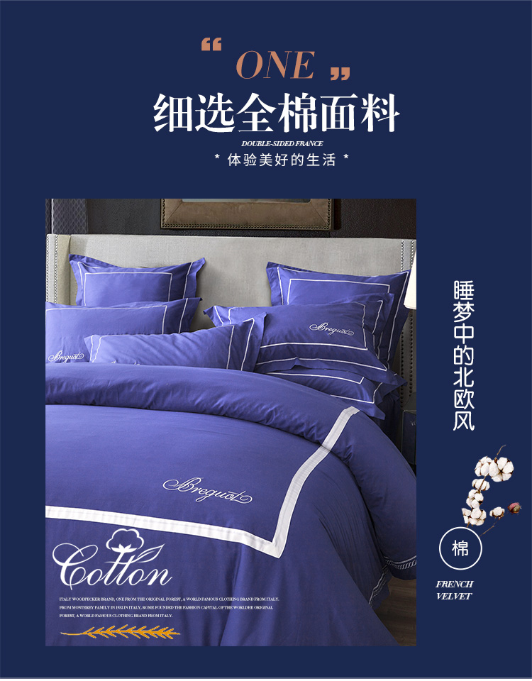当前位置: 91家纺网 > 商品网购 > 床品套件 > 四件套 > 全棉普通四件套 > 兴美佳家纺 简约酒店风纯色全棉四件套 深蓝