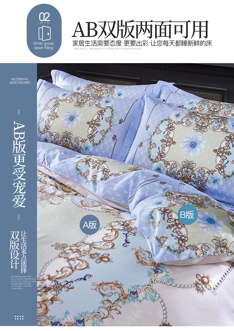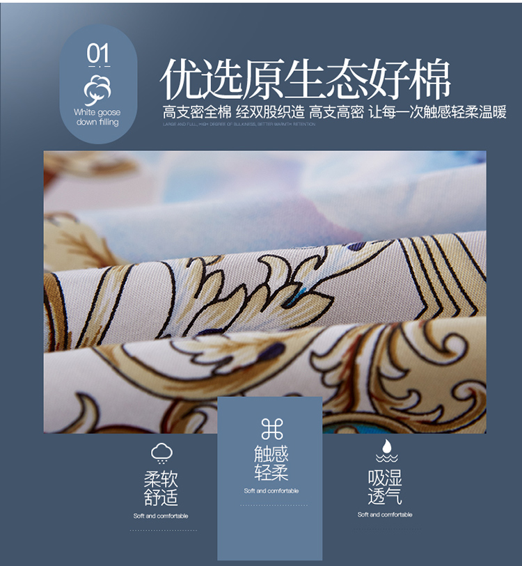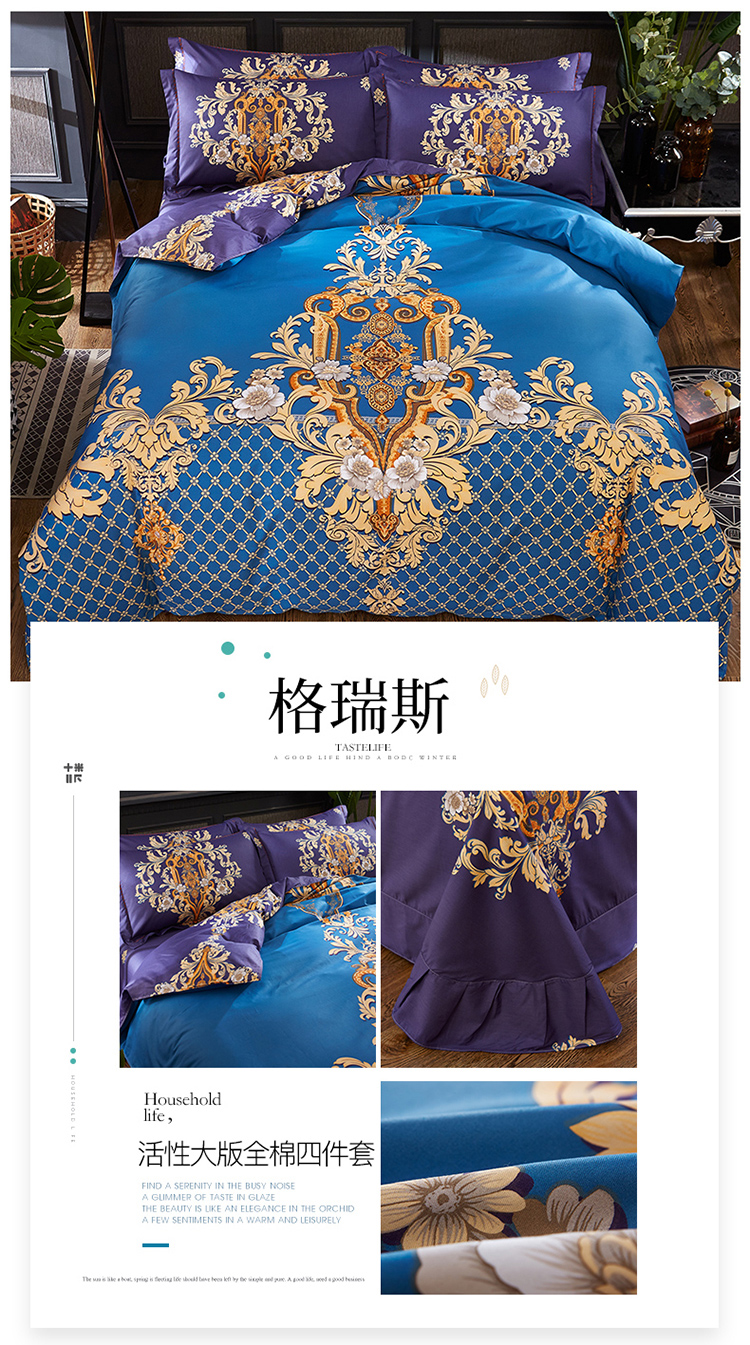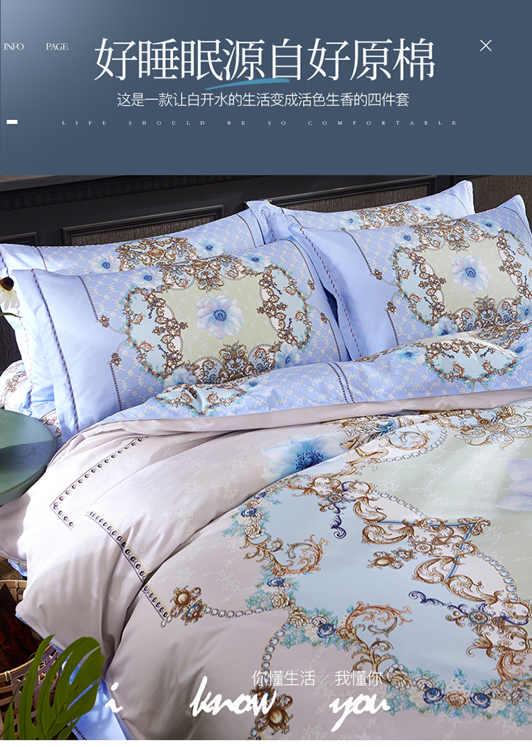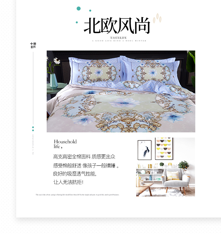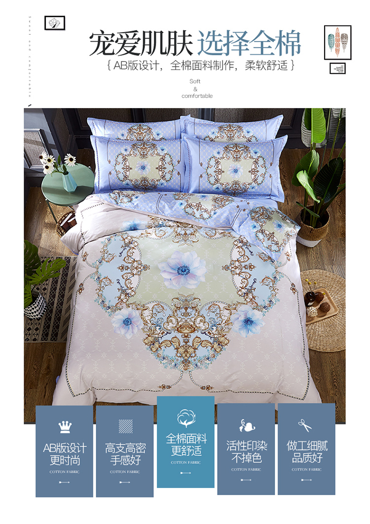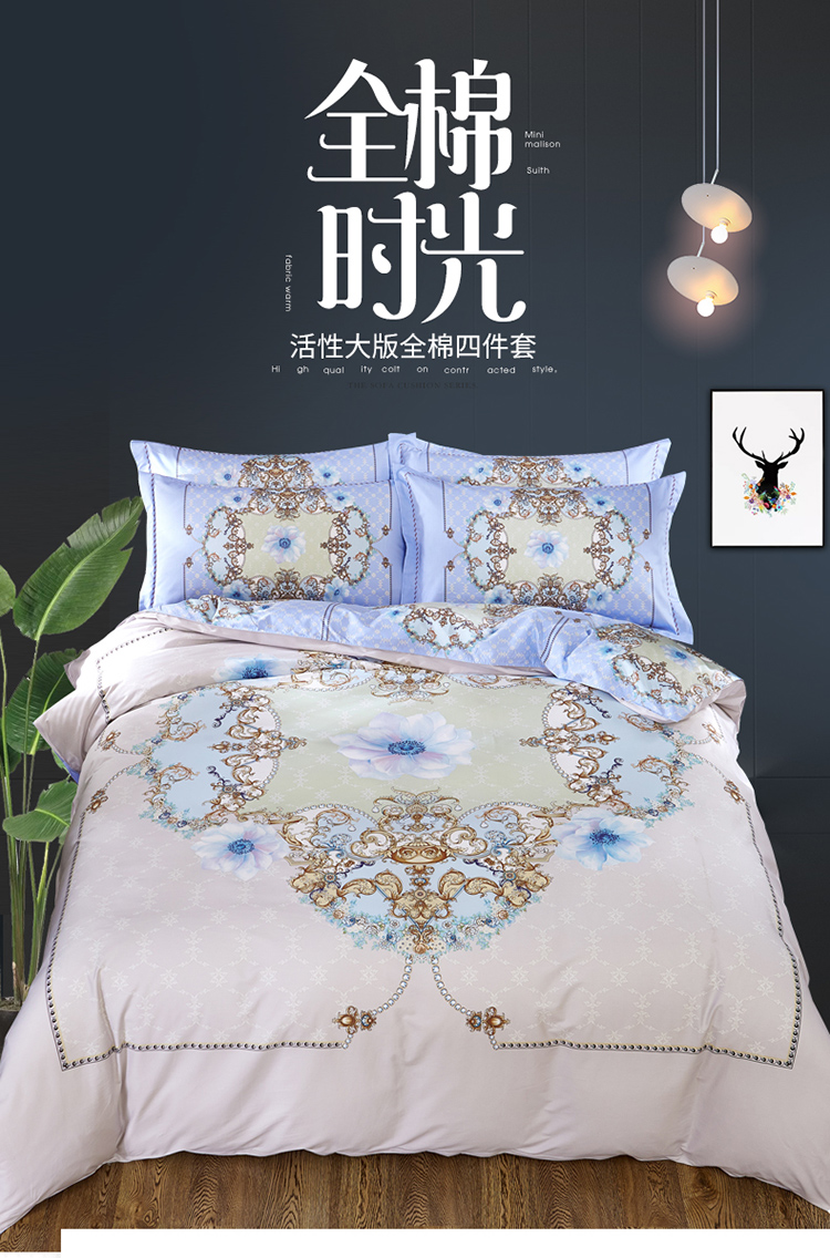商品名称:(总)雲归梦 活性大版匹马棉四件套-北欧风花型床单款