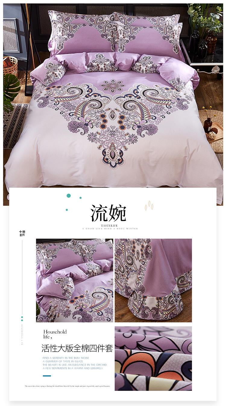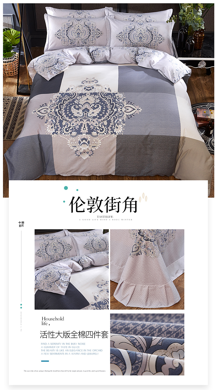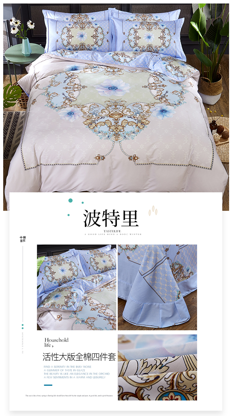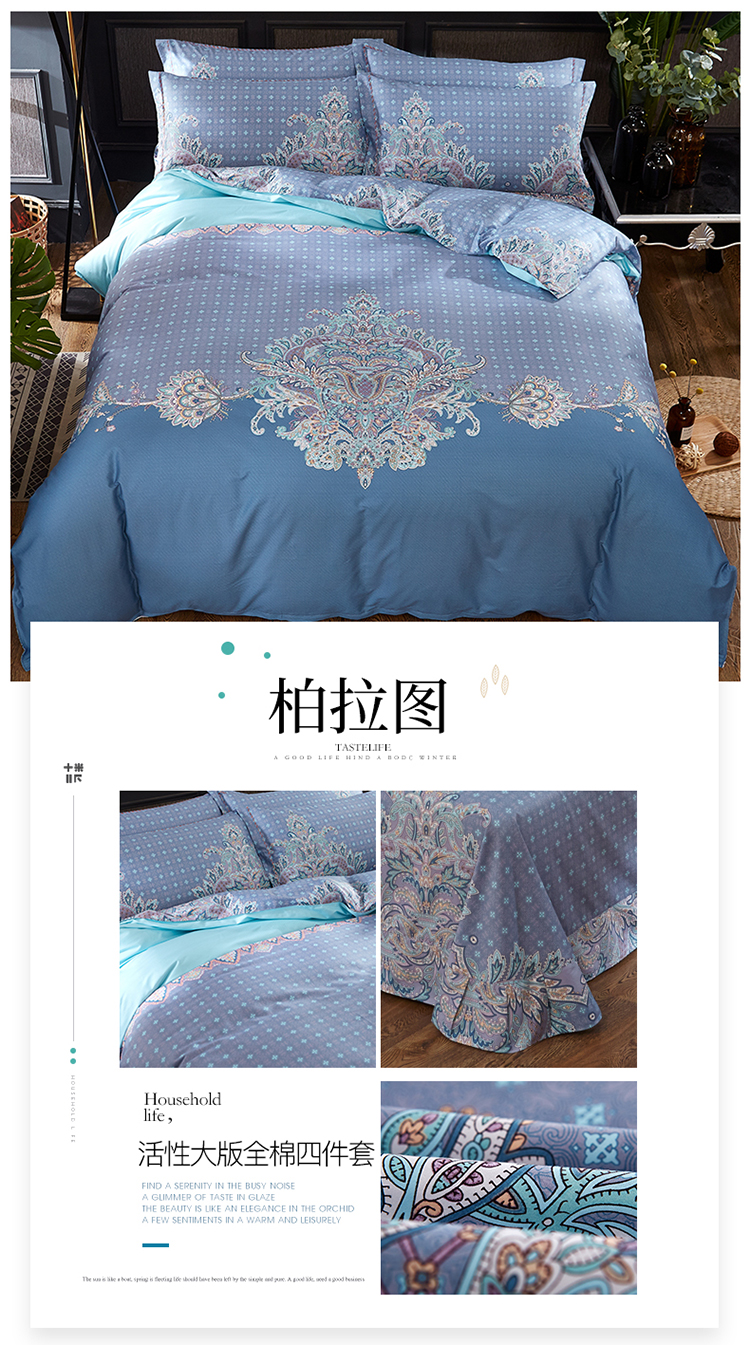 (总)雲归梦 活性大版匹马棉四件套-北欧风花型床笠款