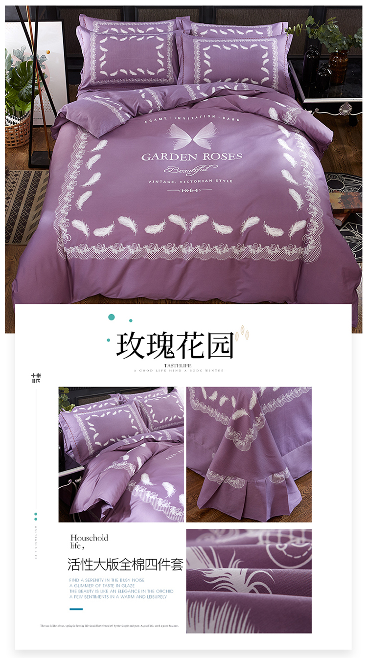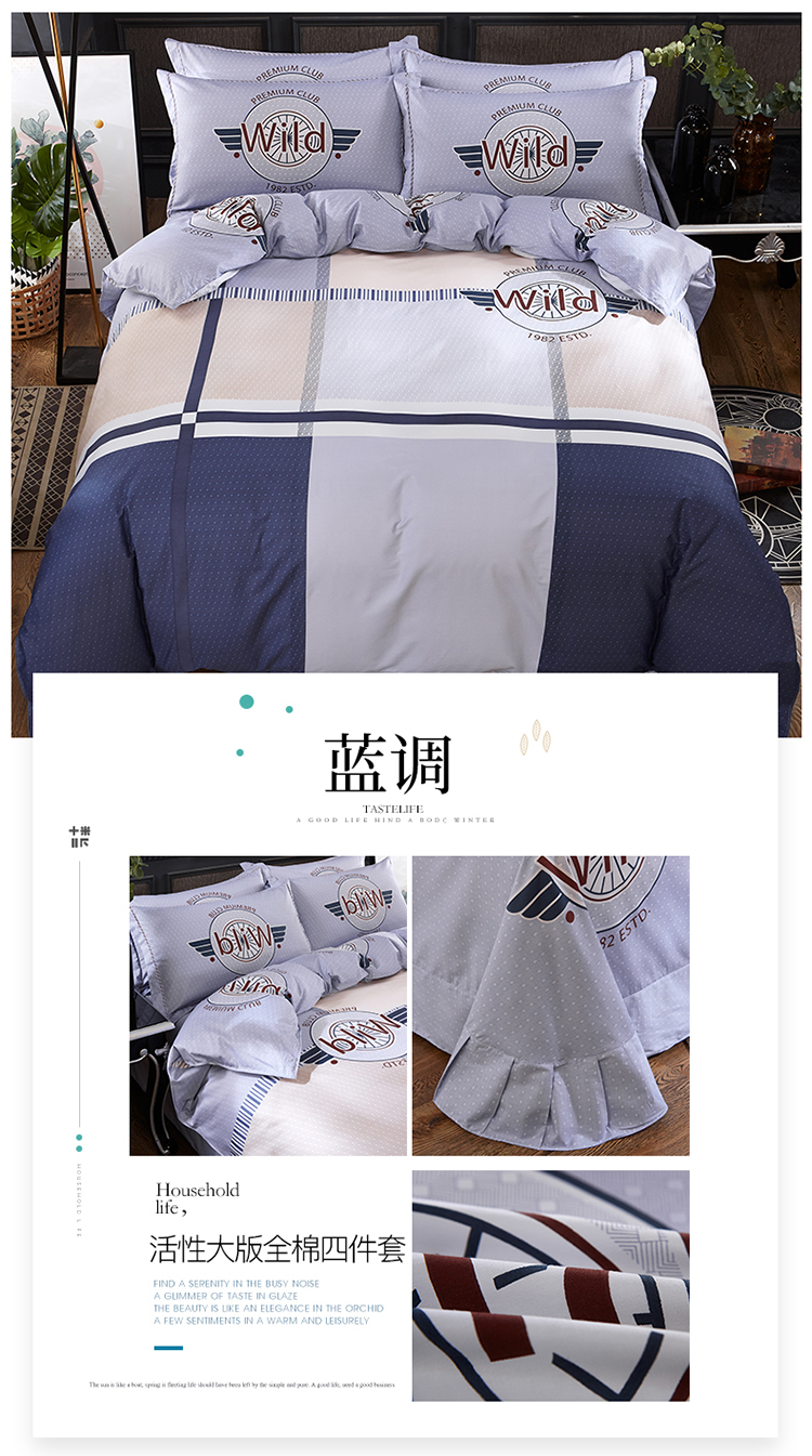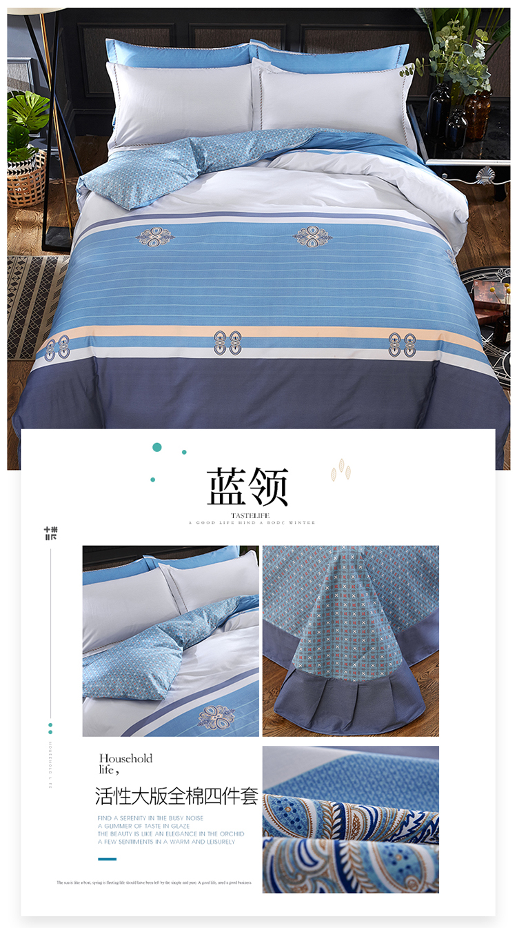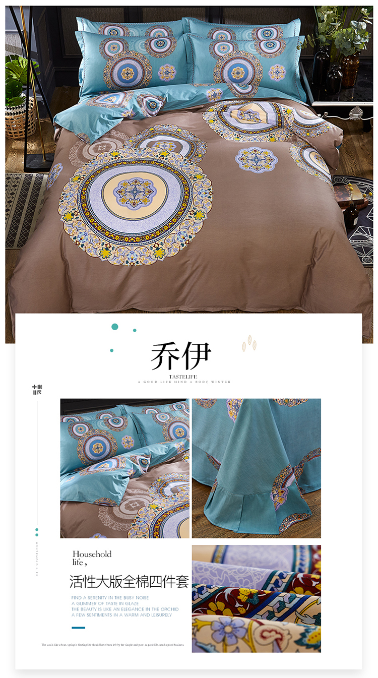 (总)雲归梦 活性大版匹马棉四件套-北欧风花型床笠款