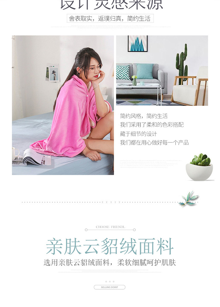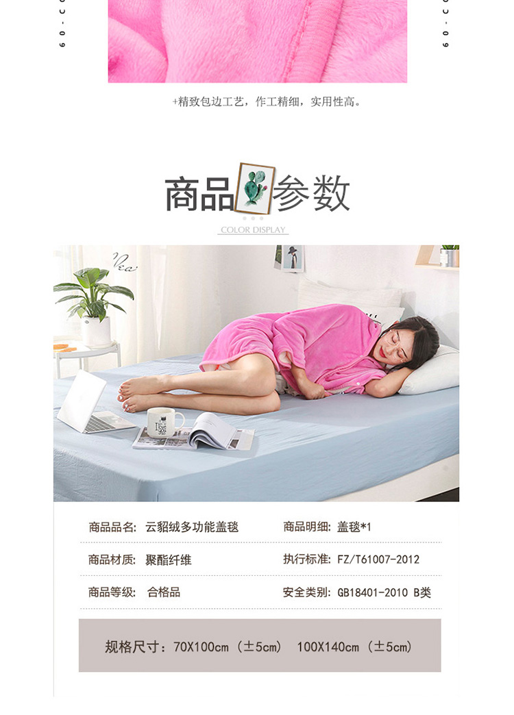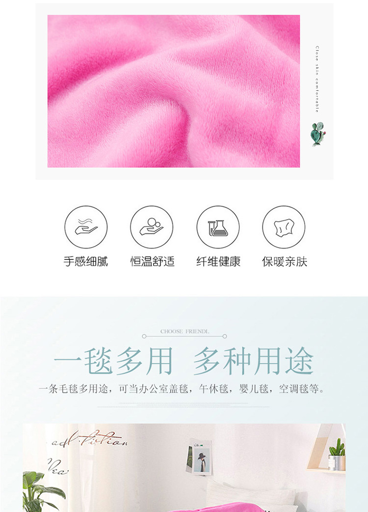 商品名称:羋多家纺 单层双面加厚多功能毯童毯披肩毯 粉色