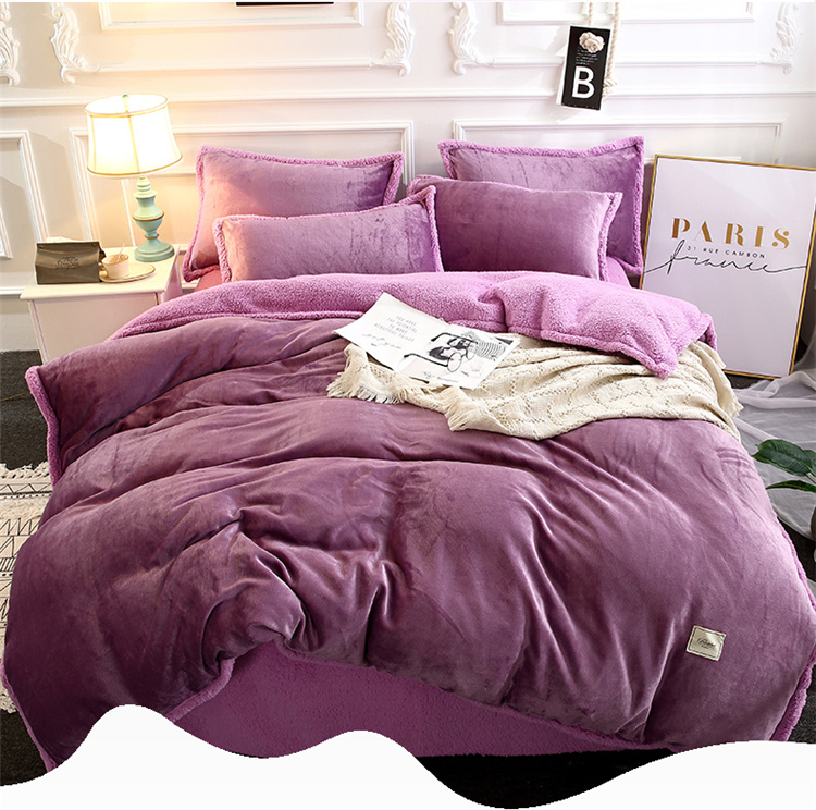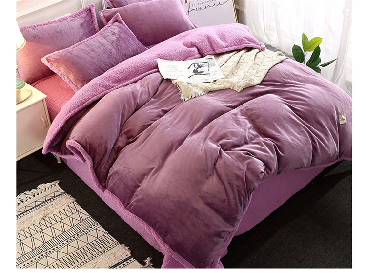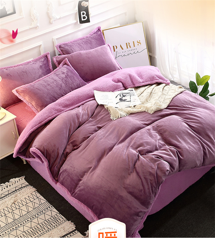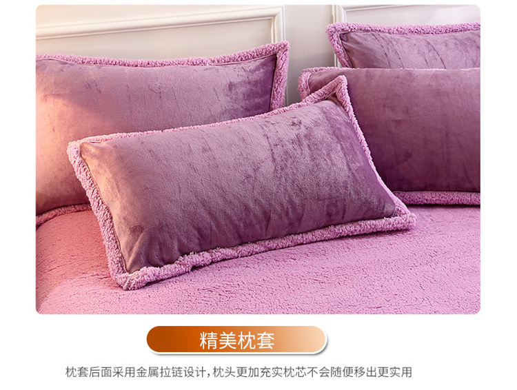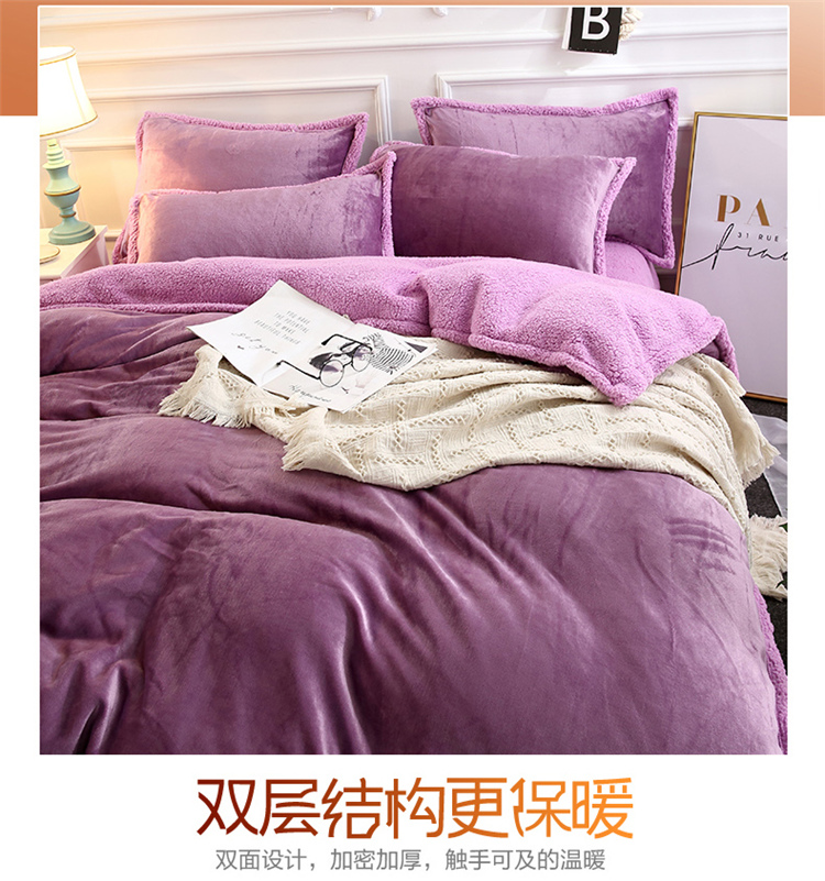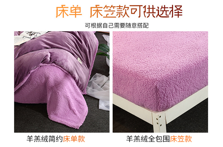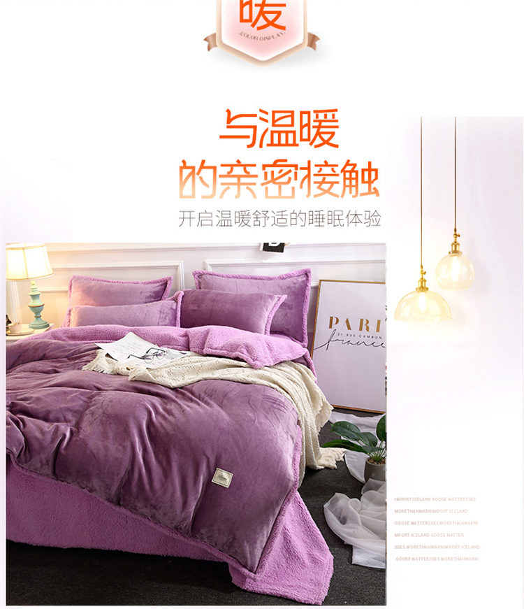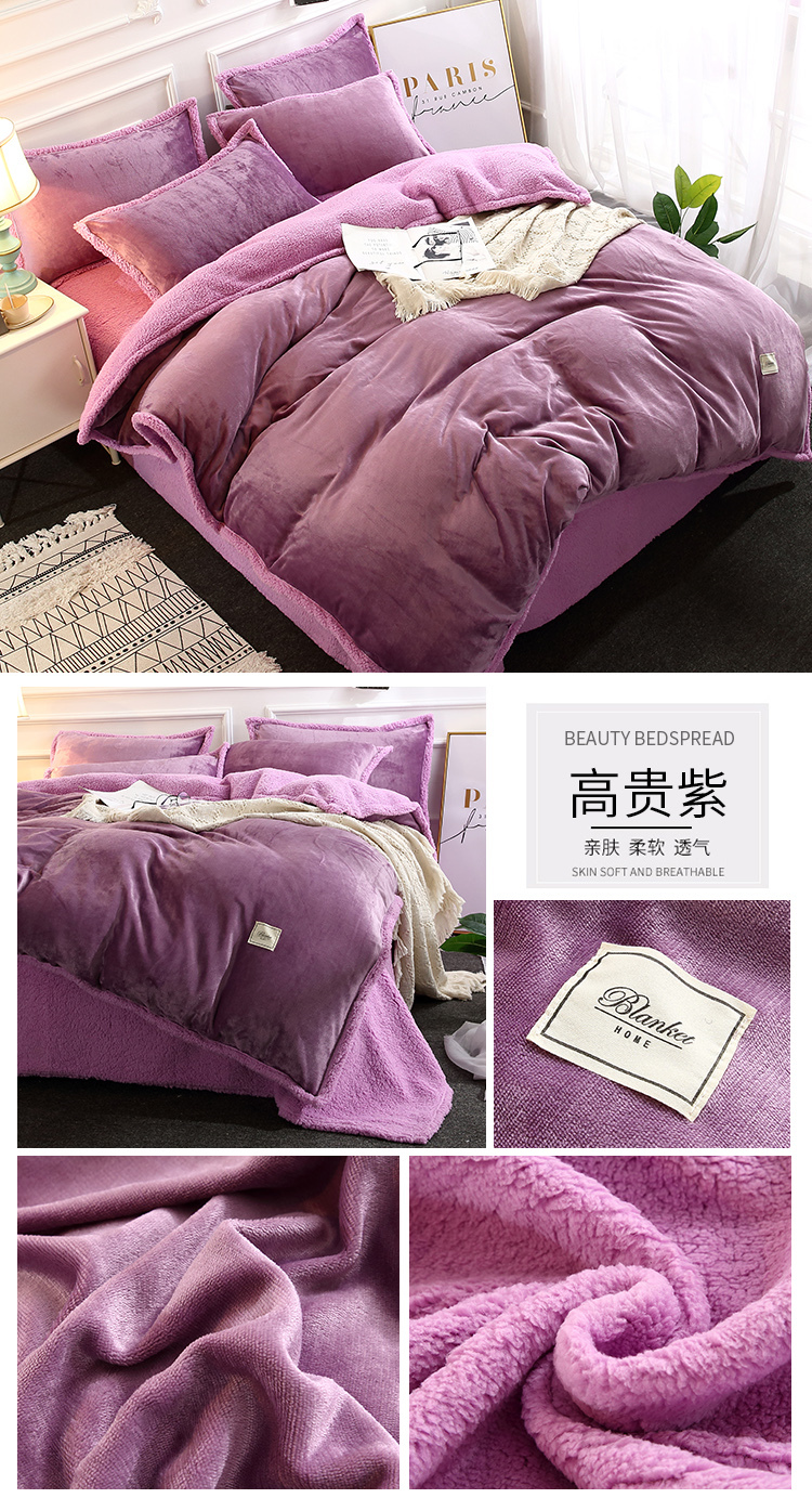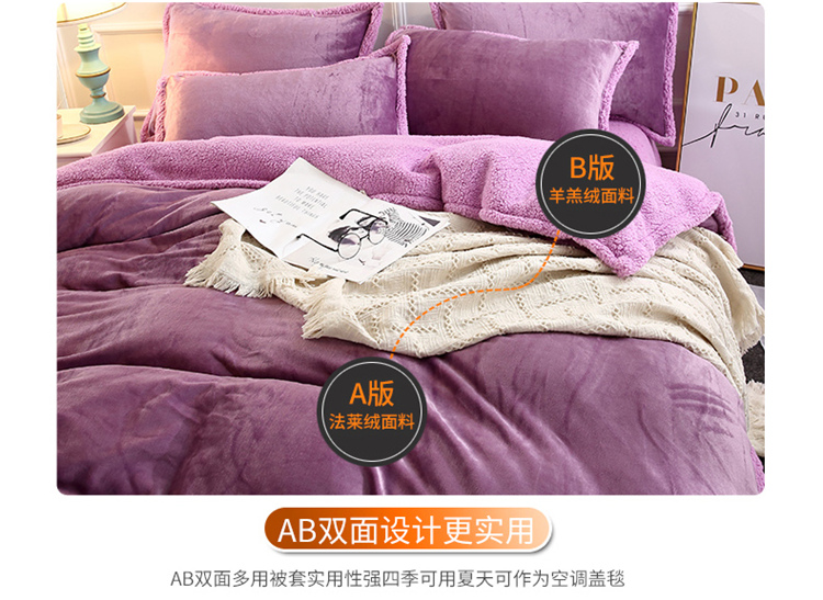 商品名称:青竹苑 2018多功能水晶绒羊羔绒双拼床单四件套 高贵紫