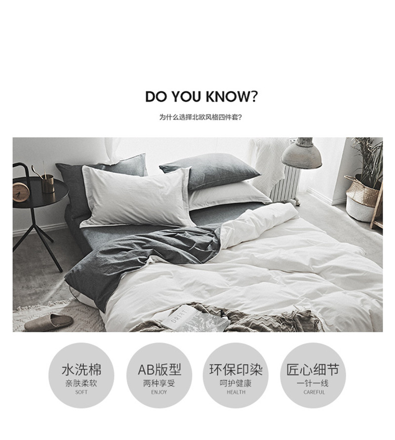 商品名称:2018素色水洗四件套 灰白