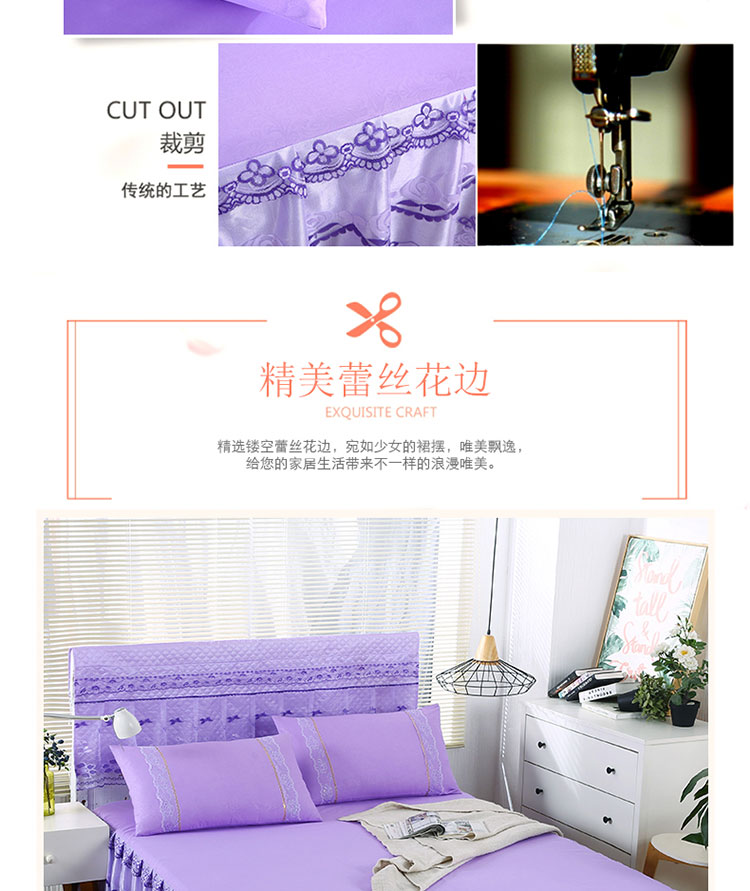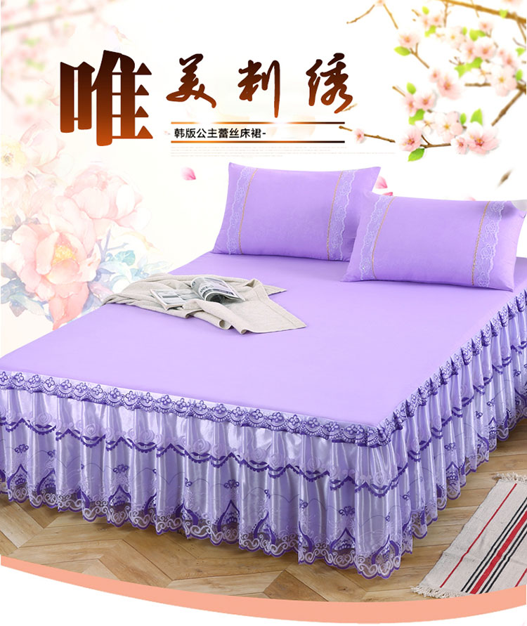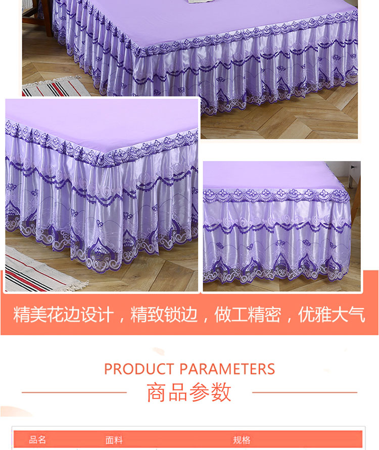 商品名称:情恒家纺 2019新款蕾丝床裙系列绽放 紫色