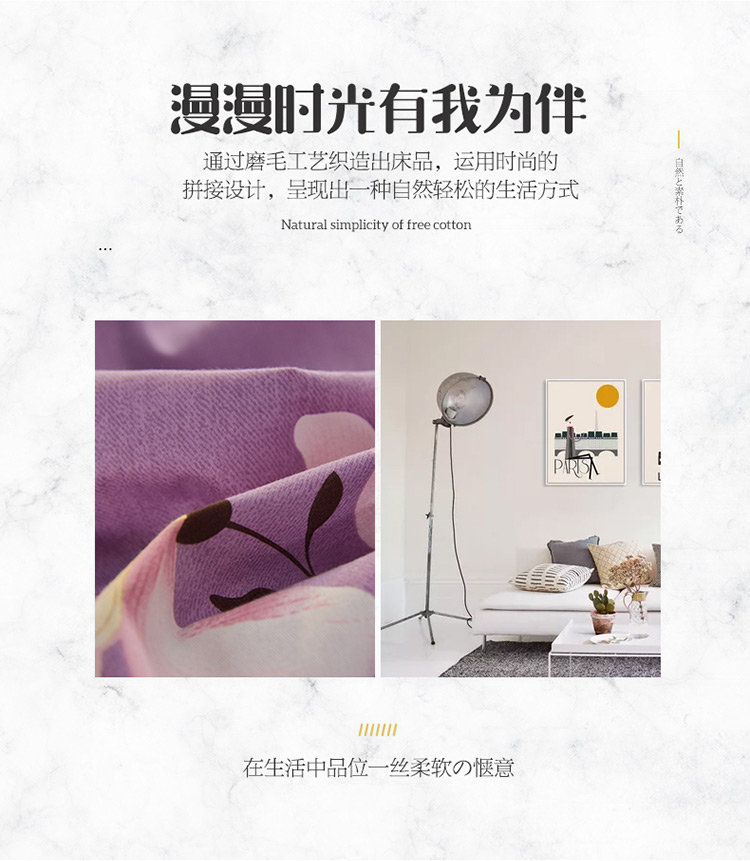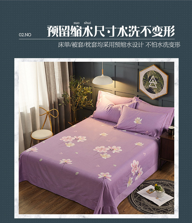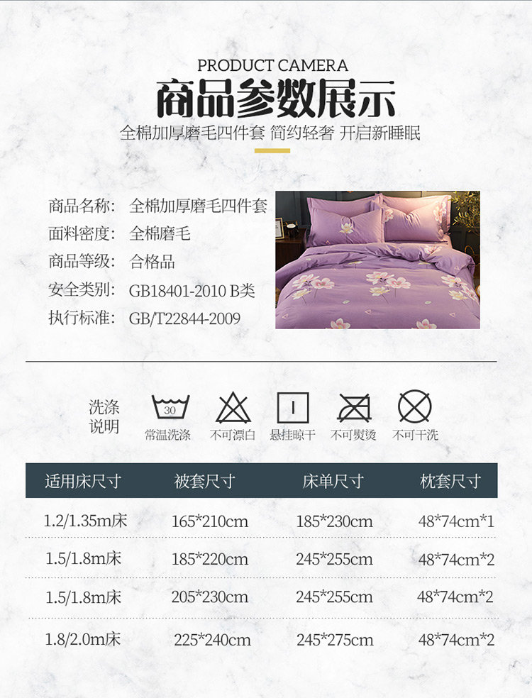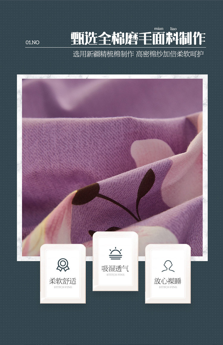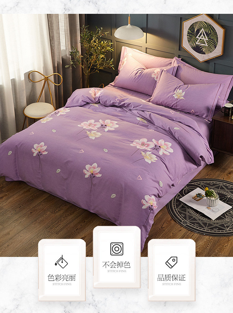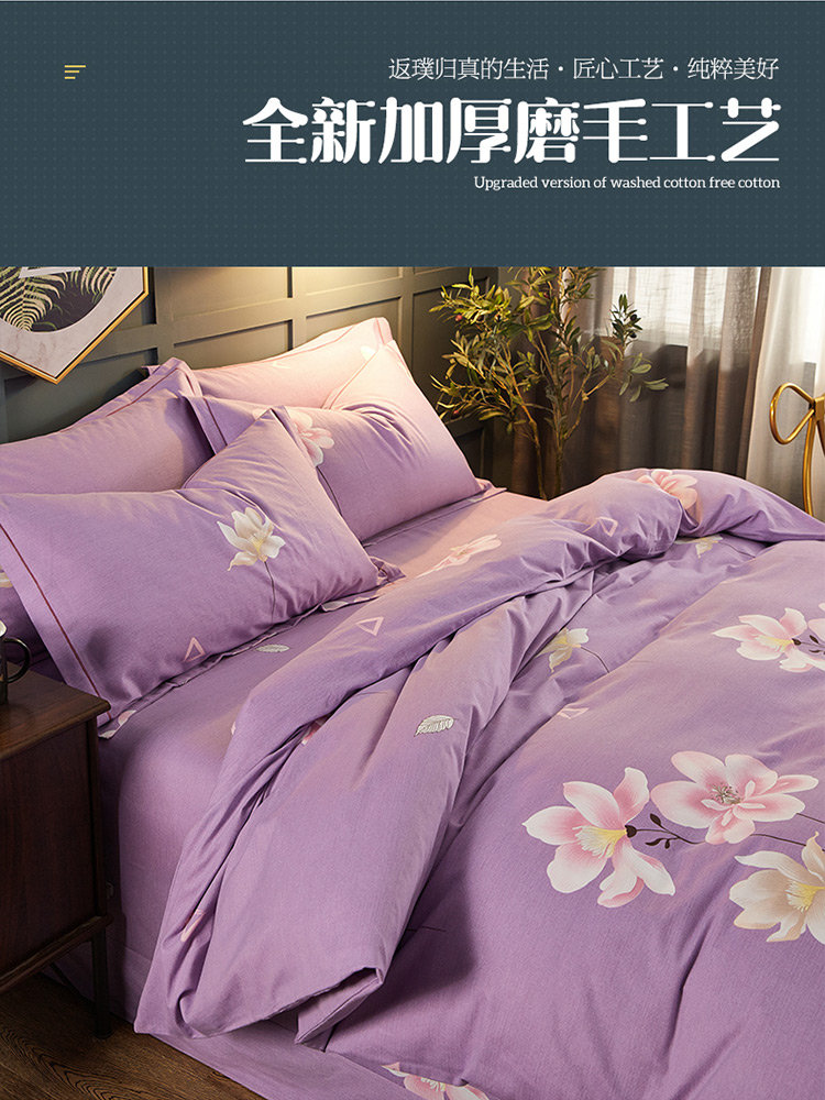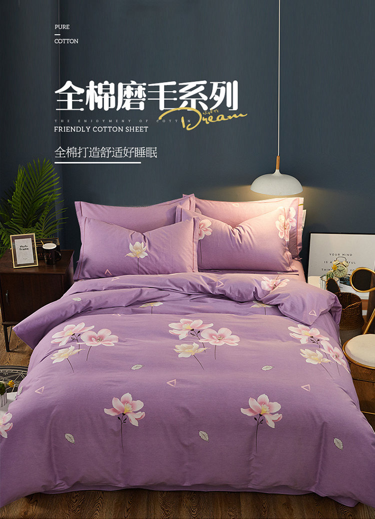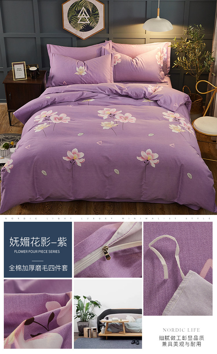 商品名称:雲归梦 2019新款多规格全棉加厚生态磨毛四件套 妩媚花影-紫