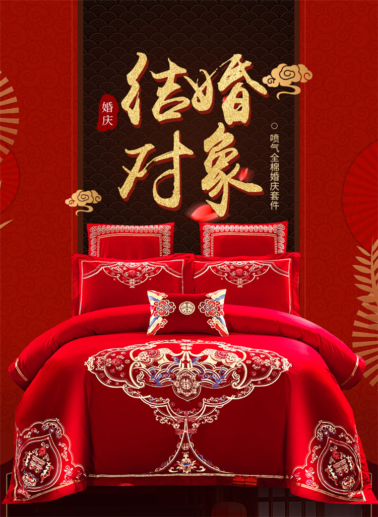 千禧婚庆专供 2019喷气全棉婚庆四件套多件套 结婚对象