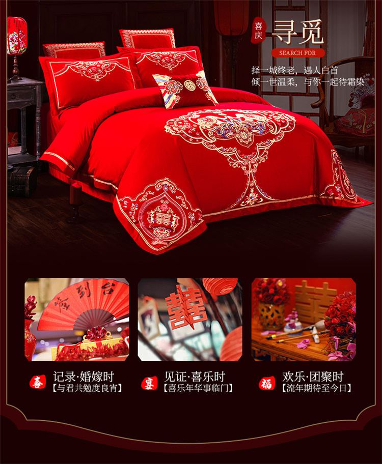 (总)千禧家纺 2024新款双面长绒棉磨毛加厚保暖绣花婚庆套件,大喜大吉,鸿运贺禧,欢乐喜事,欢喜,美满爱情,喜上眉梢,喜约,相伴一生,挚爱