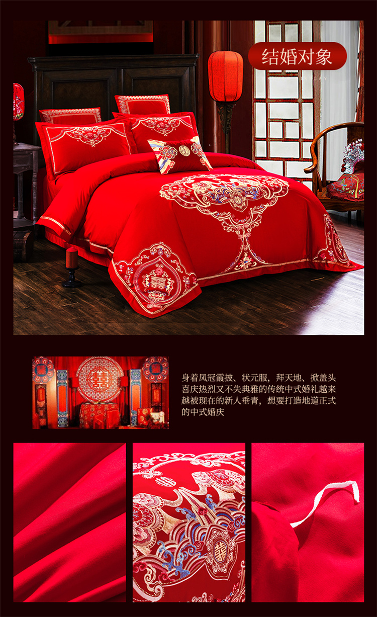 商品名称:千禧婚庆专供 2019喷气全棉婚庆四件套多件套 结婚对象