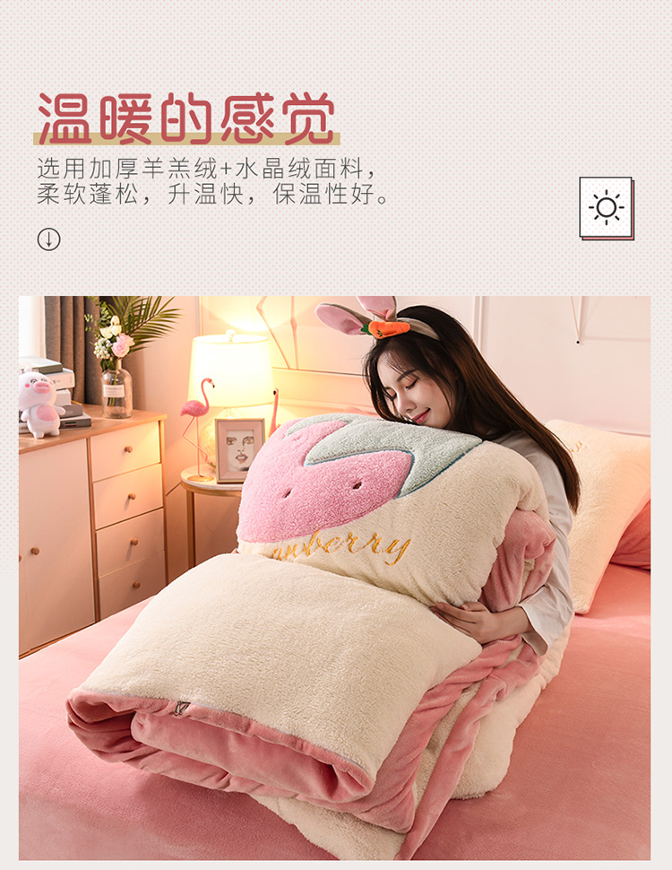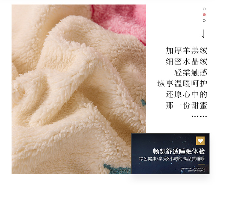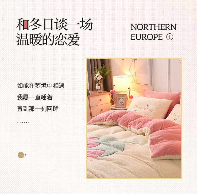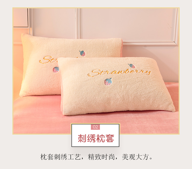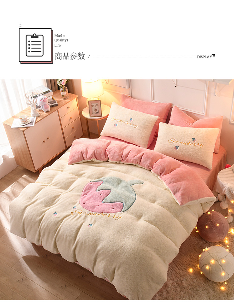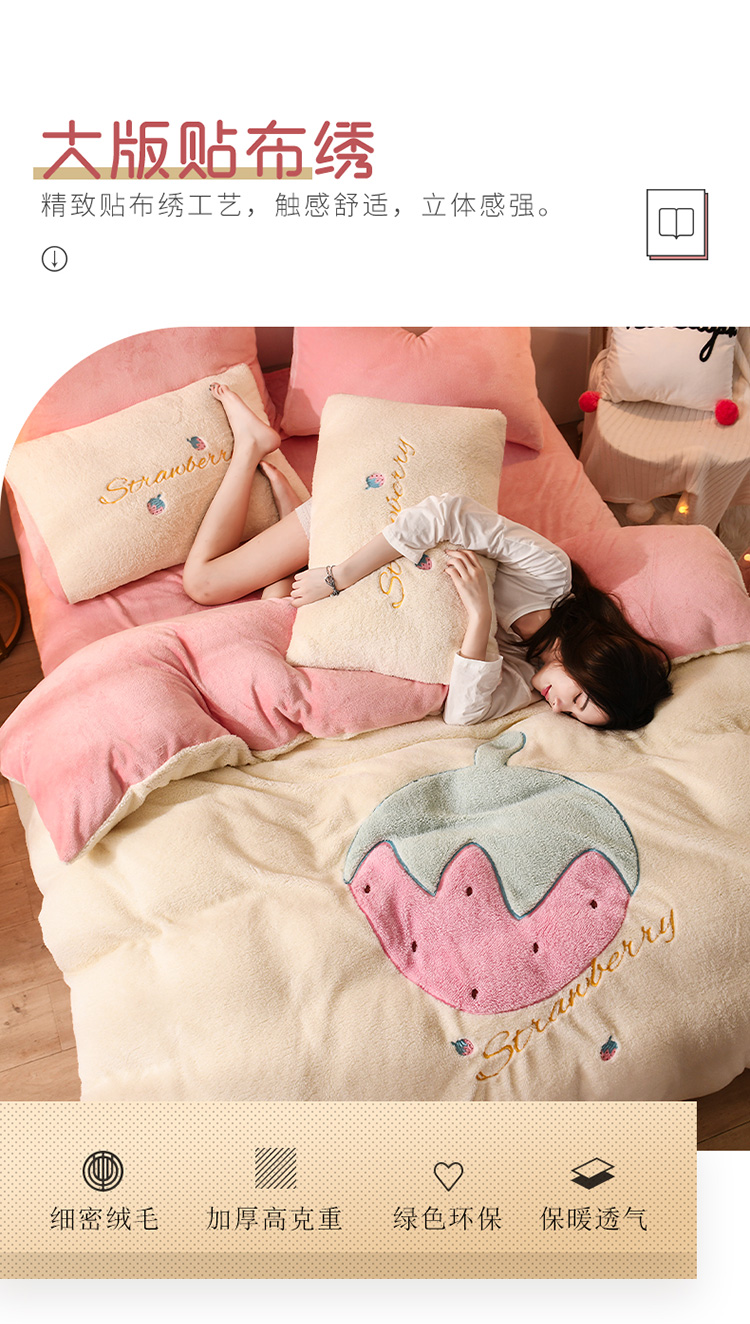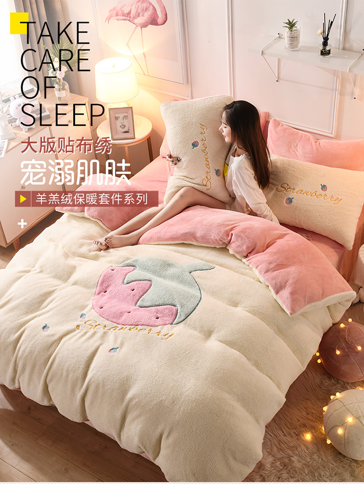 商品名称:朗莎家纺 2019新款大版贴布绣羊羔绒保暖四件套 草莓奶白