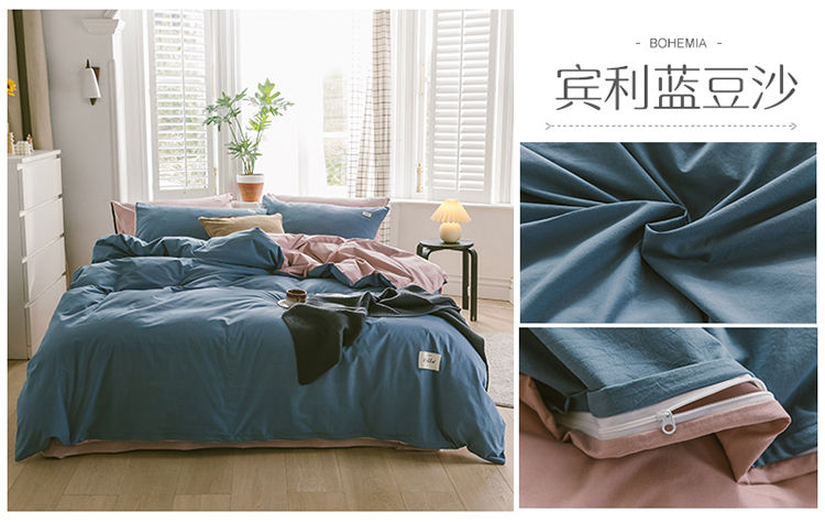 商品名称:蓝巢2020年春夏新品全棉加厚水洗棉双拼款四件套宾利蓝豆沙