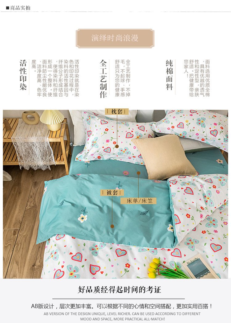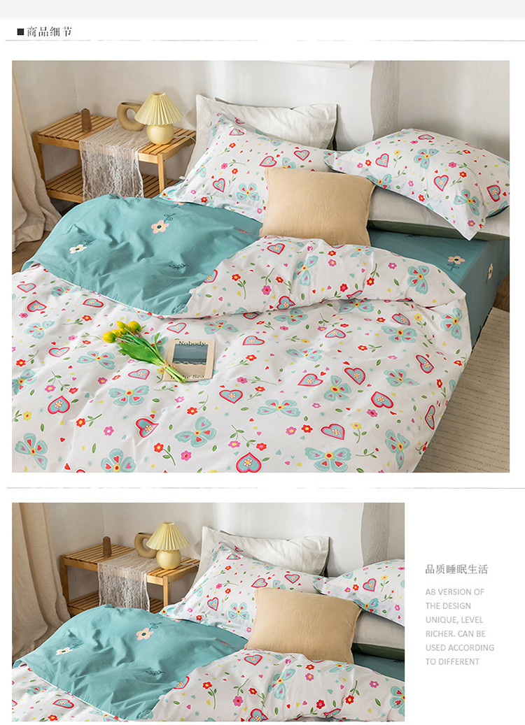 (总)窝米 2020春夏新品全棉13372四件套小波西风系列,草莓酱,木槿,小花花,小尤里
