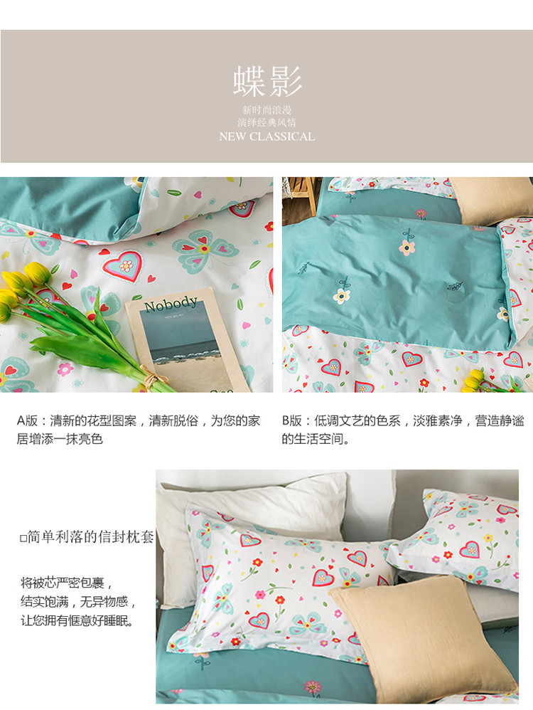 窝米 2020春夏新品花卉风系列四件套 蝶影