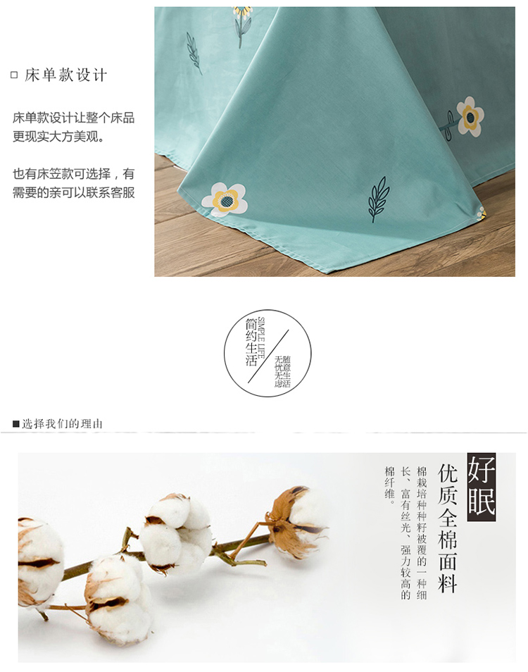 窝米 2020春夏新品全棉13372四件套小波西风系列小花花,小花花